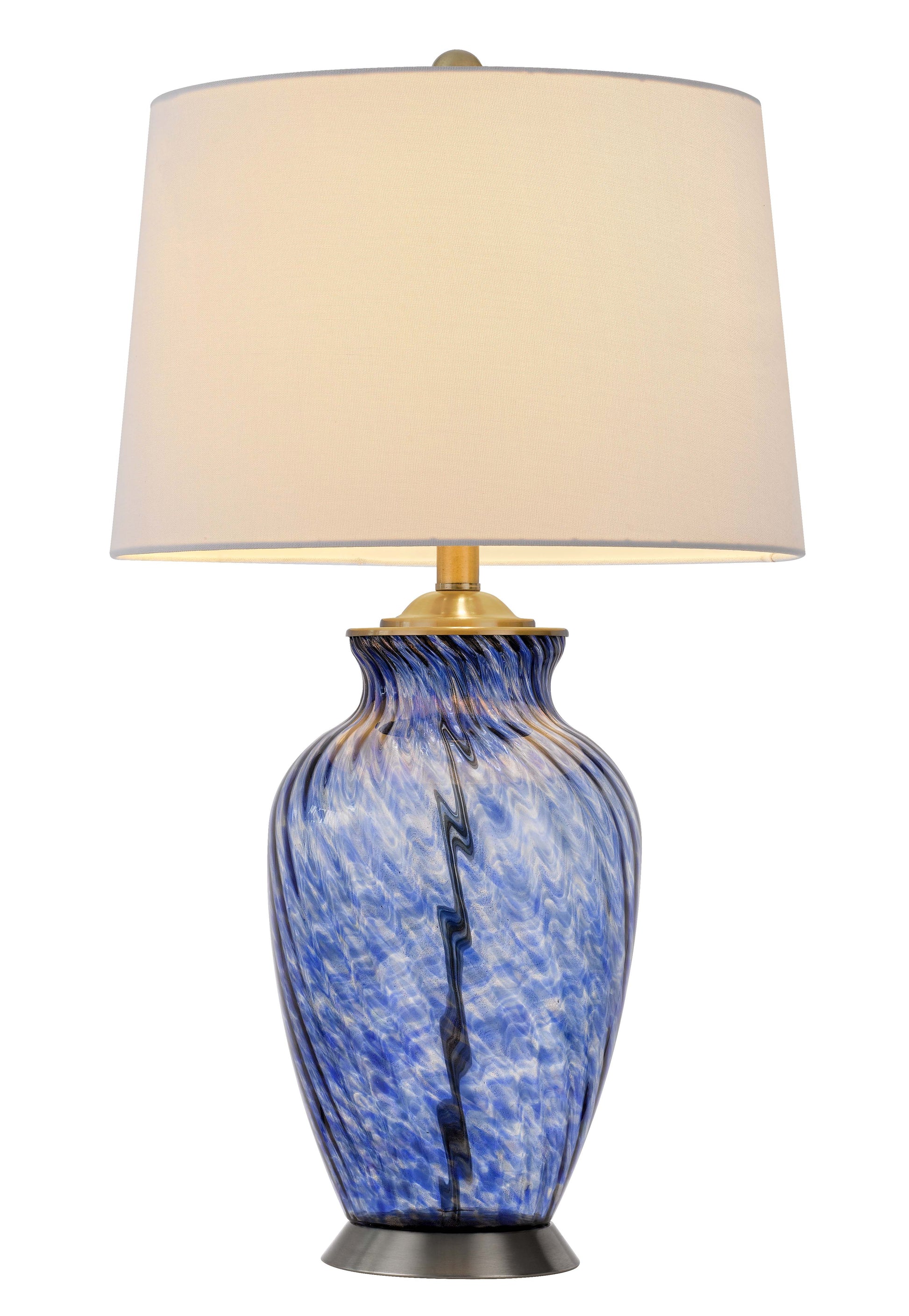 150W 3 way Ashland glass table lamp with hardback taper drum fabric shade