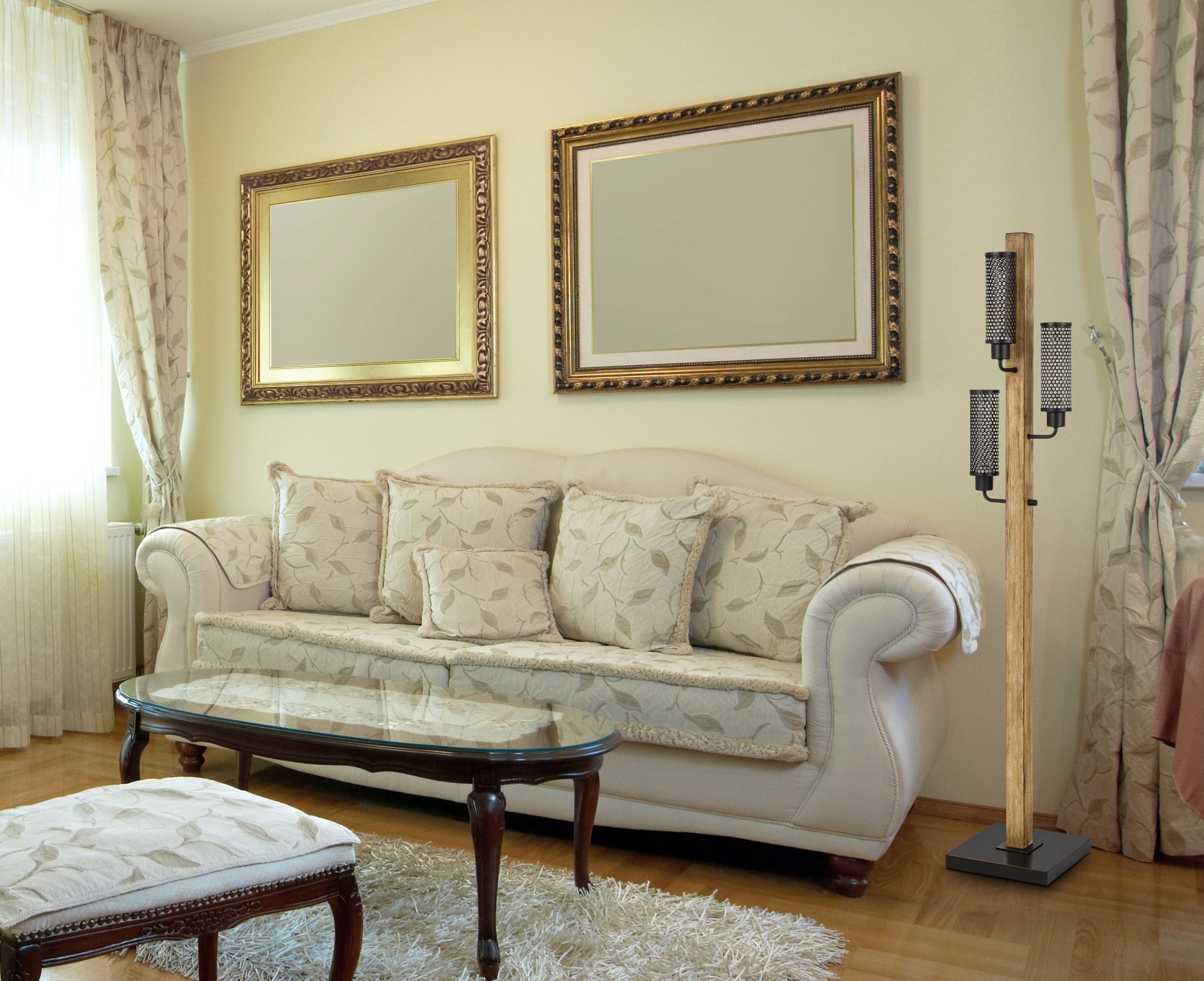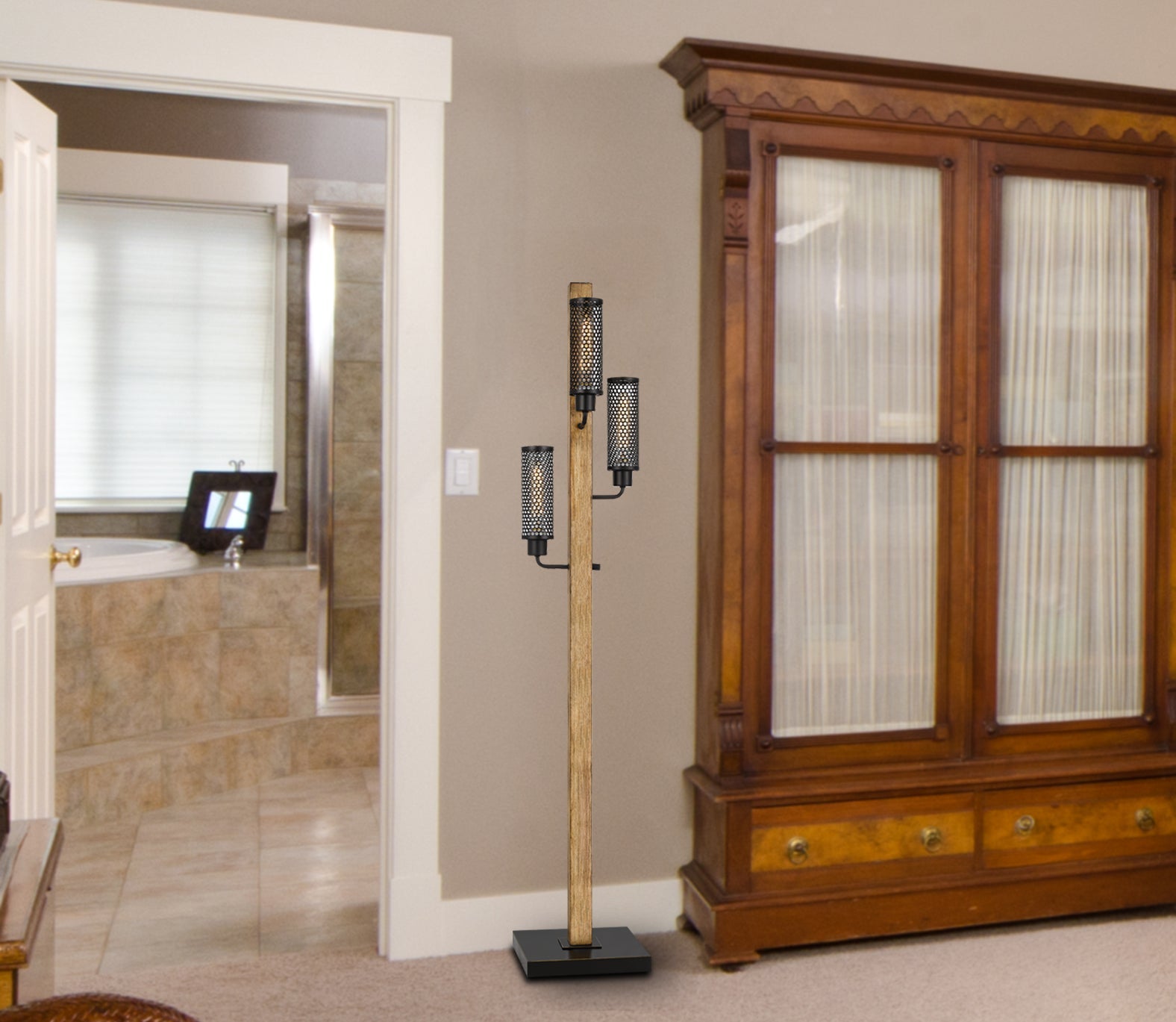 60W X 3 Lenox Lantern Style Rubber Wood / Metal Floor Lamp With Mesh Metal Shades