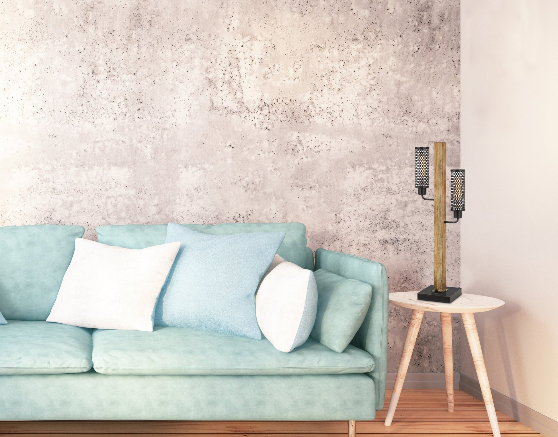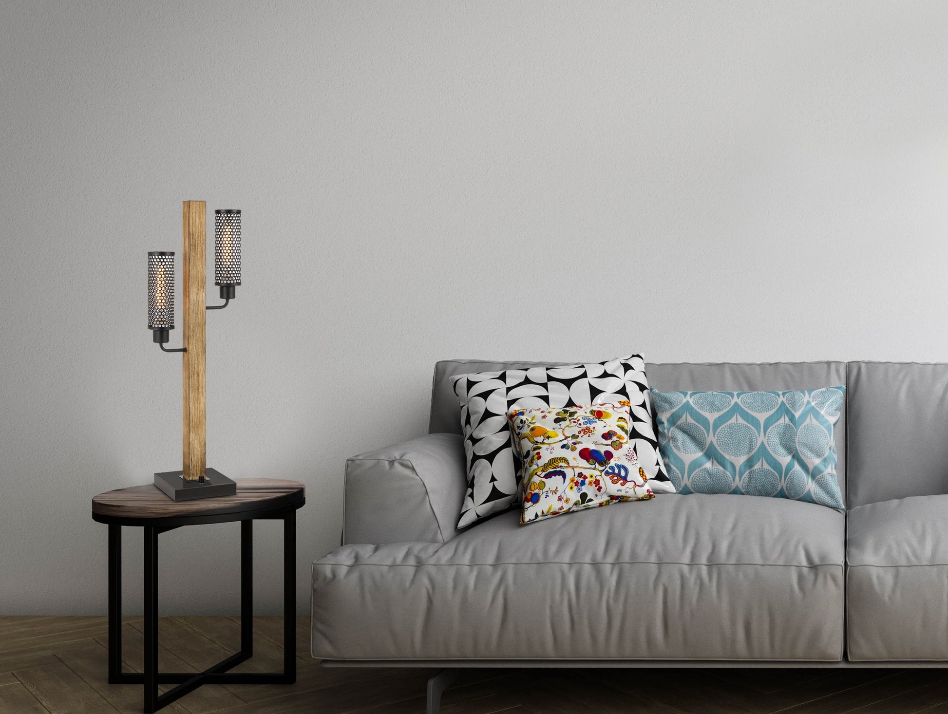 60W X 2 Lenox Lantern Style Rubber Wood / Metal Table Lamp With Mesh Metal Shades