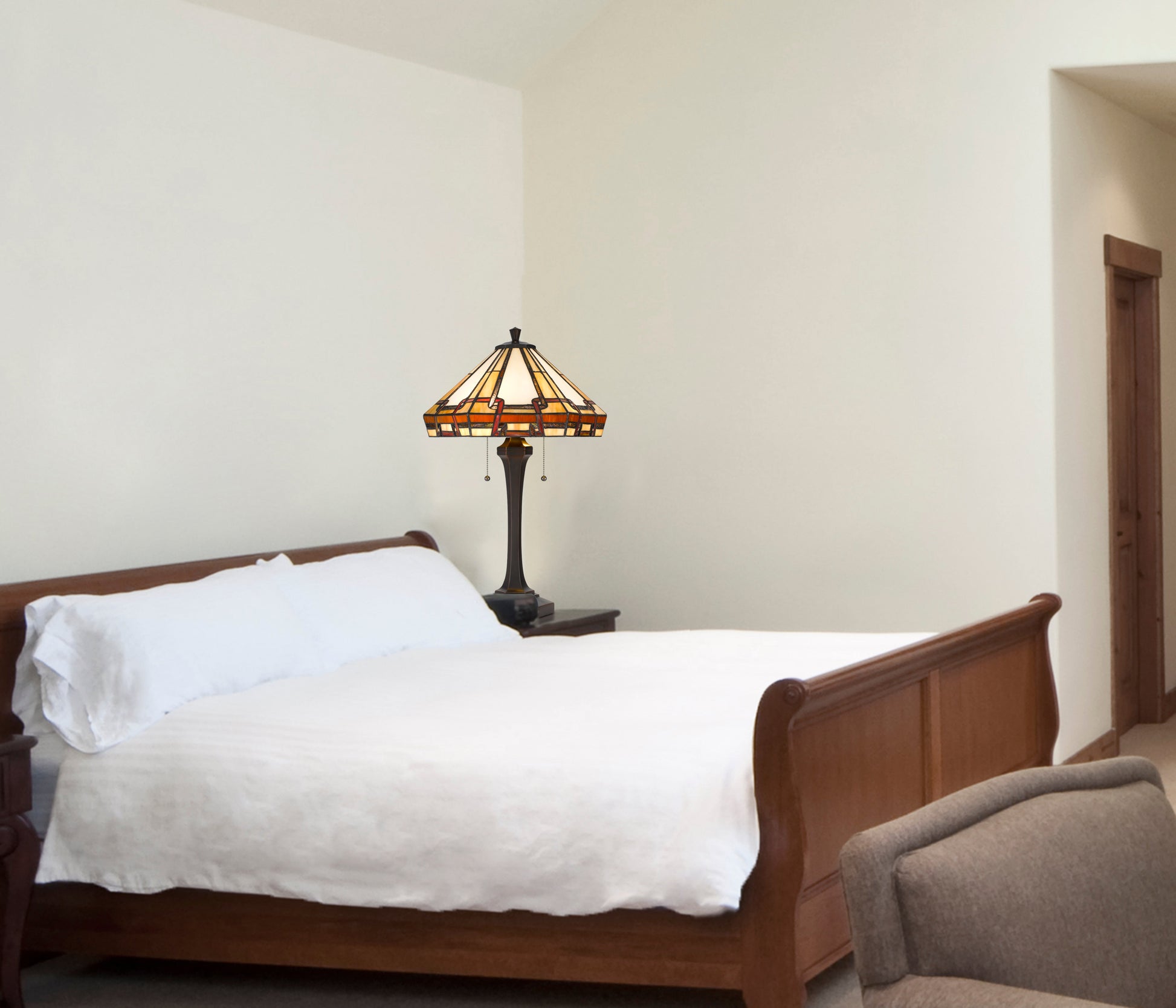 60W X 2 Tiffany Table Lamp With Pull Chain Switch With Resin Lamp Body