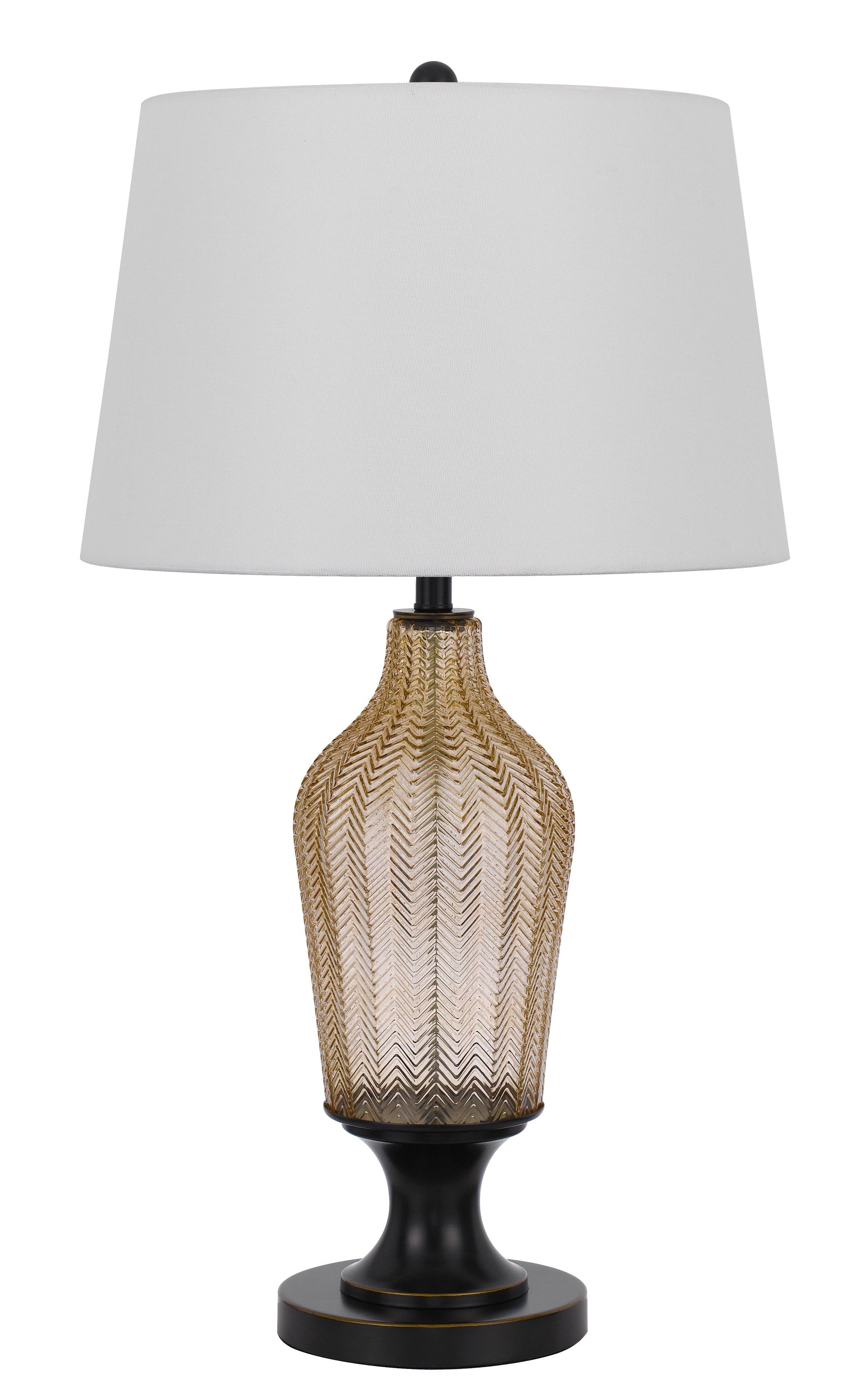 150W 3 Way Fluted Column Glass Table Lamp With Metal Base