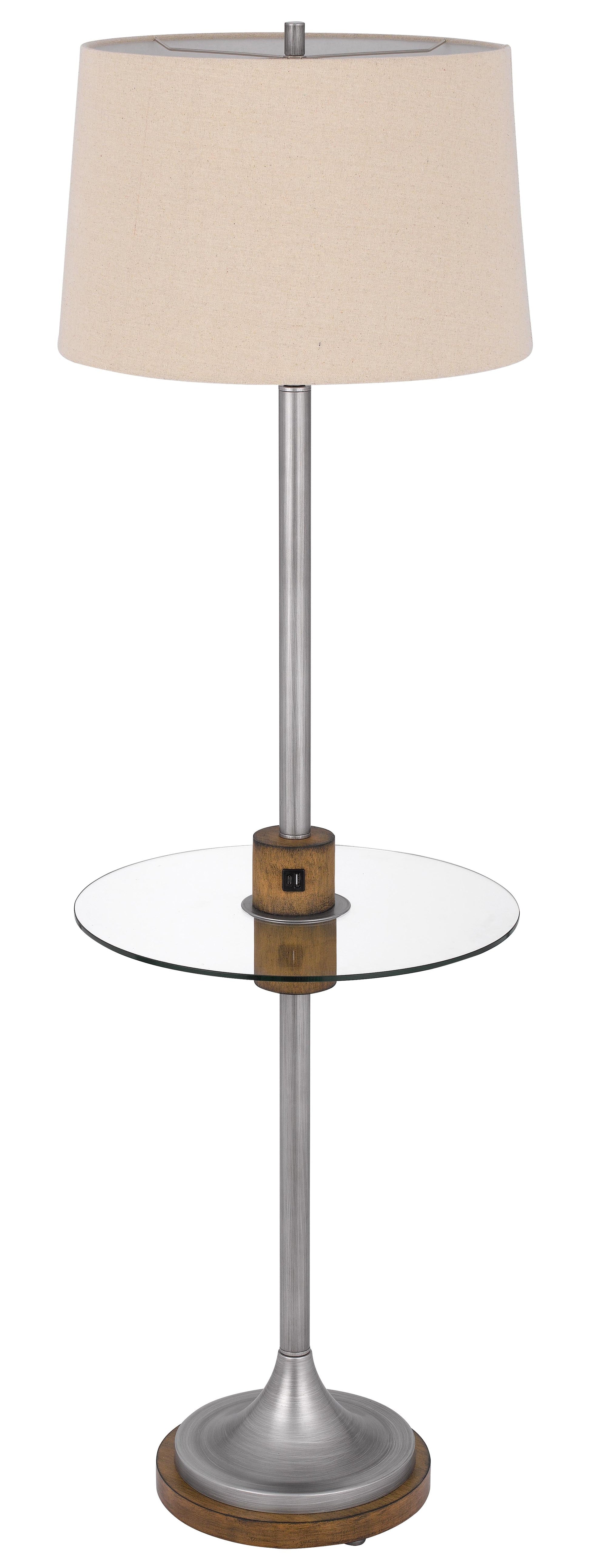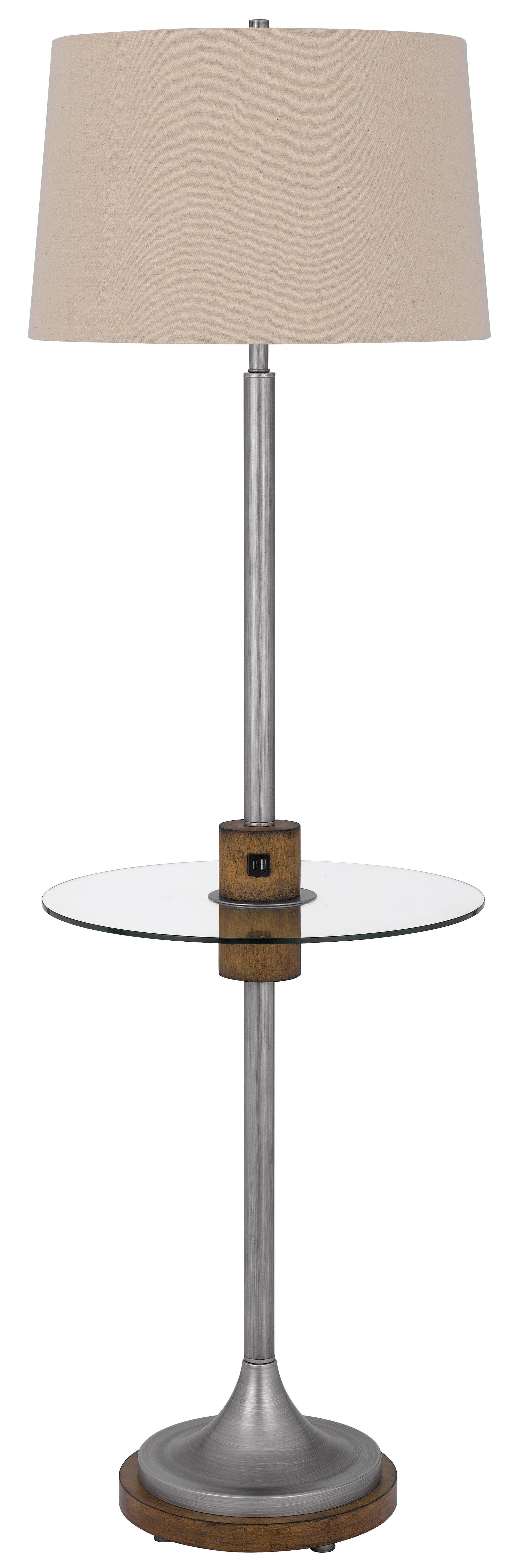 150W 3 way Lavaca metal floor lamp with glass tray table and 1 USB and 1 TYPE C USB charging ports and rubber wood center font and base