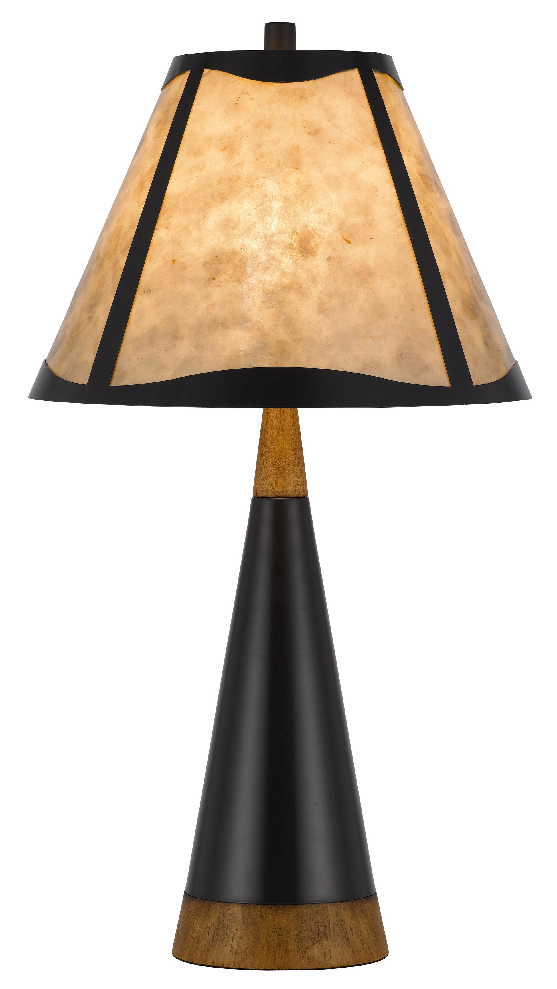 150W 3 way Clemente metal/birch wood mica table lamp