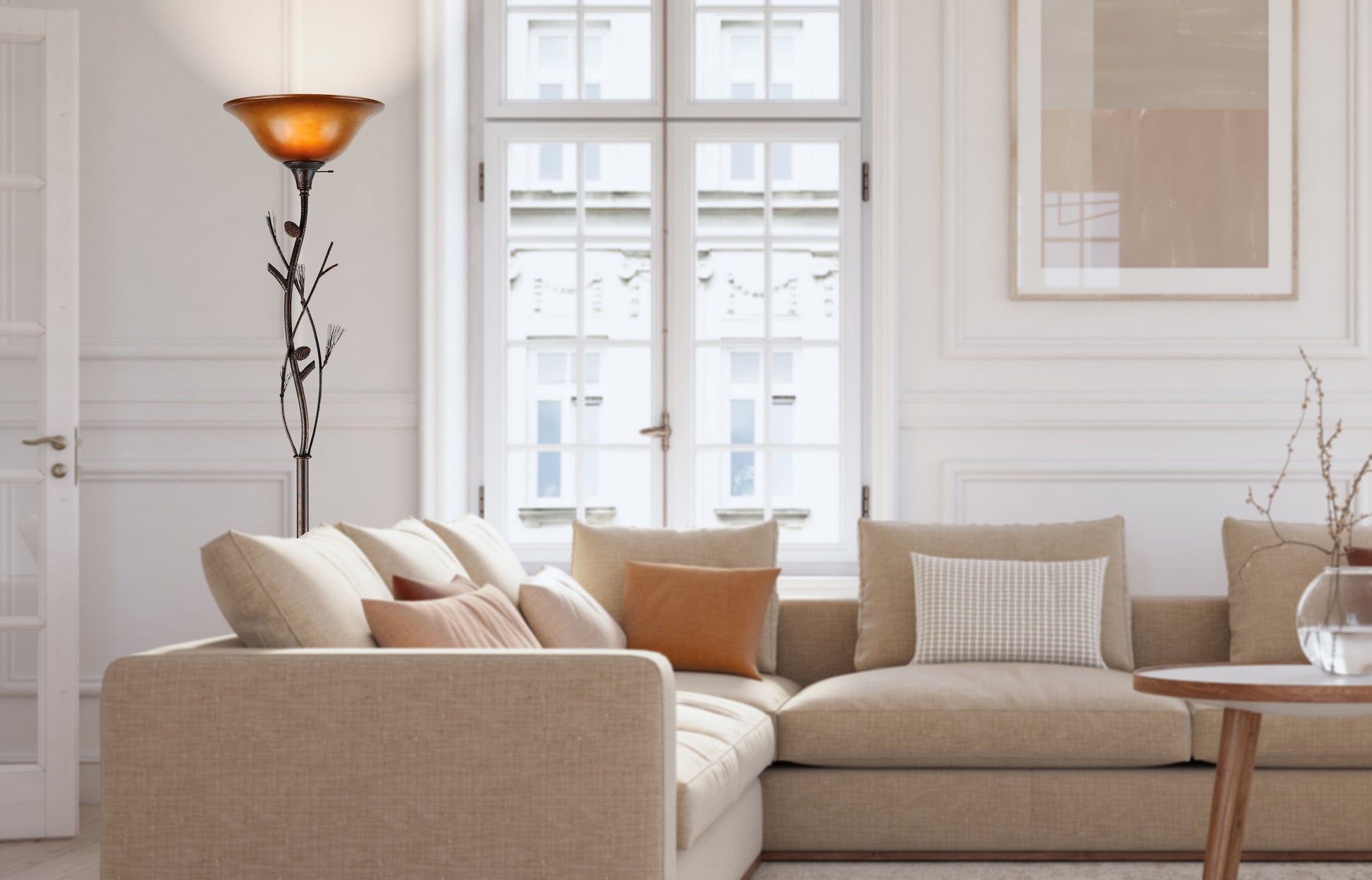150W 3 Way Pinecone Torchiere With Glass Shade
