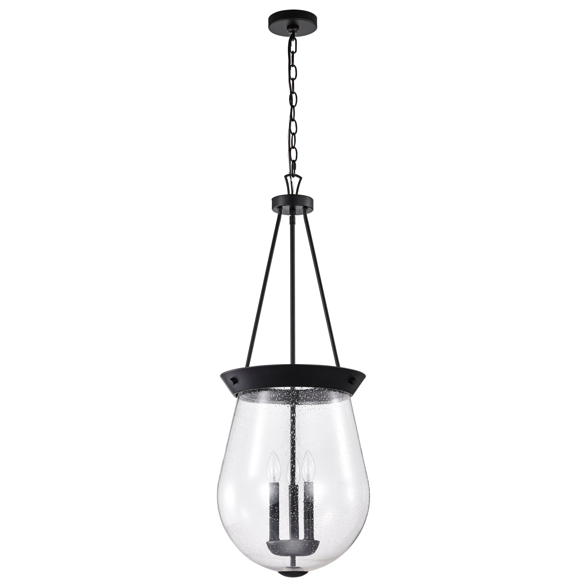 Boliver 3 Light Pendant; 14 Inches; Matte Black Finish; Clear Seeded Glass