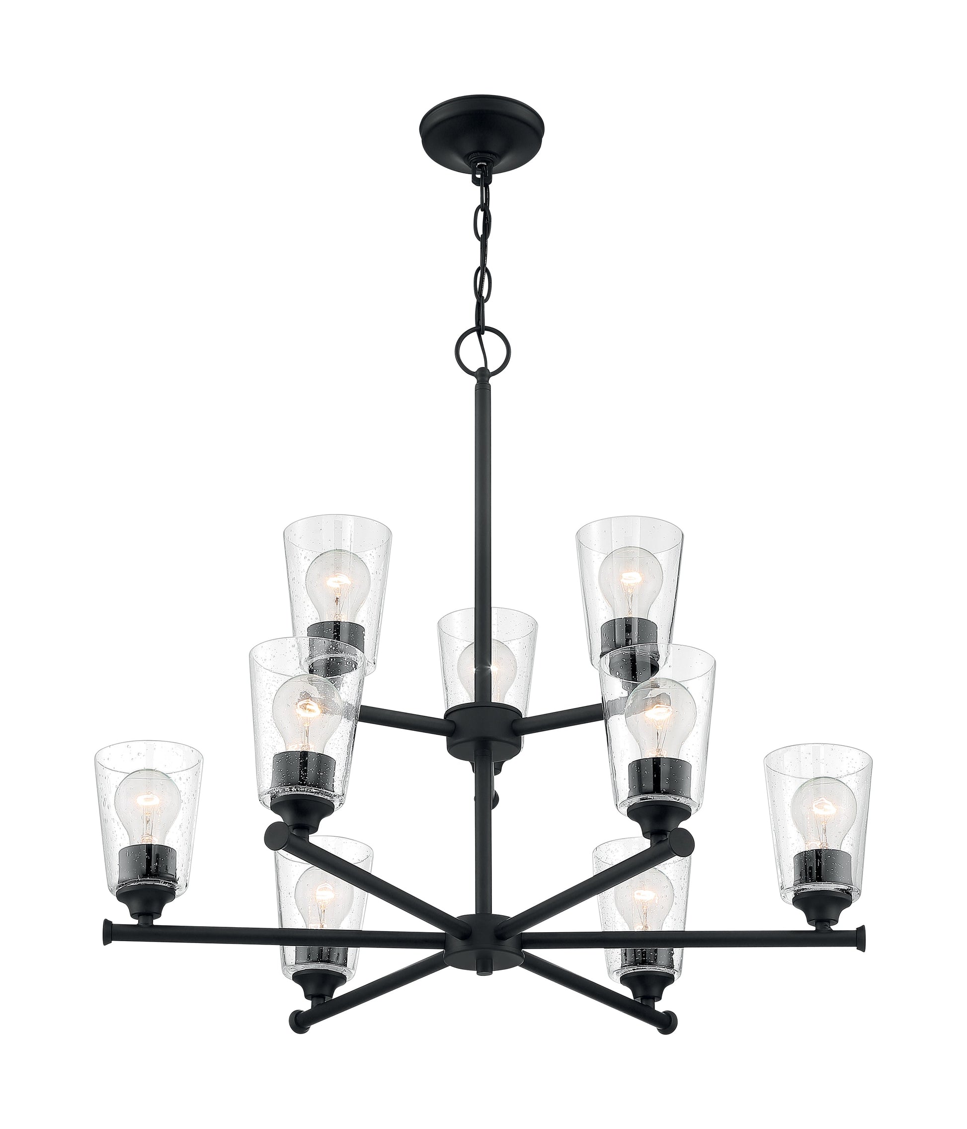 Bransel; 3 Light; Semi-Flush Fixture; Matte Black Finish with Clear Seeded Glass
