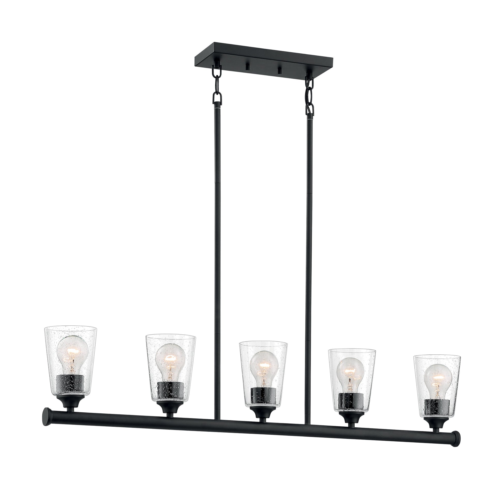 Bransel; 5 Light; Island Pendant Fixture; Matte Black Finish with Clear Seeded Glass