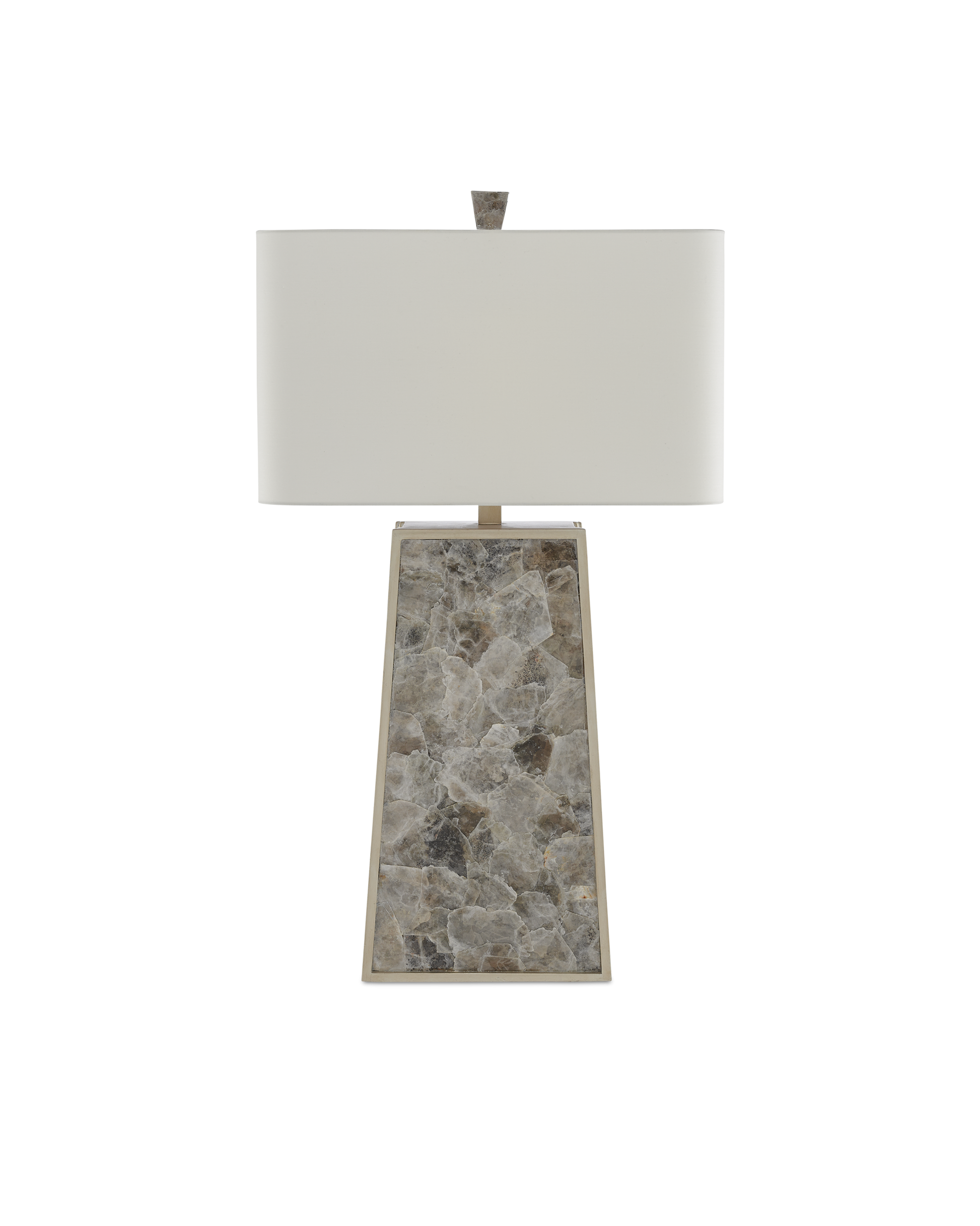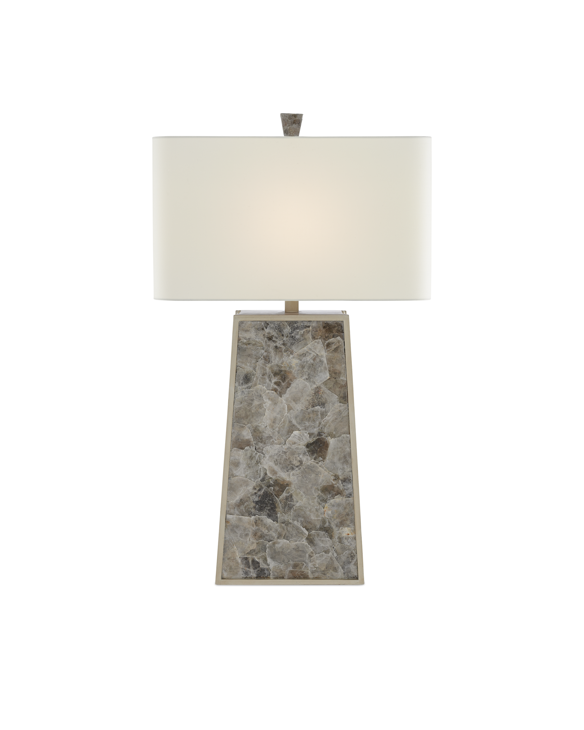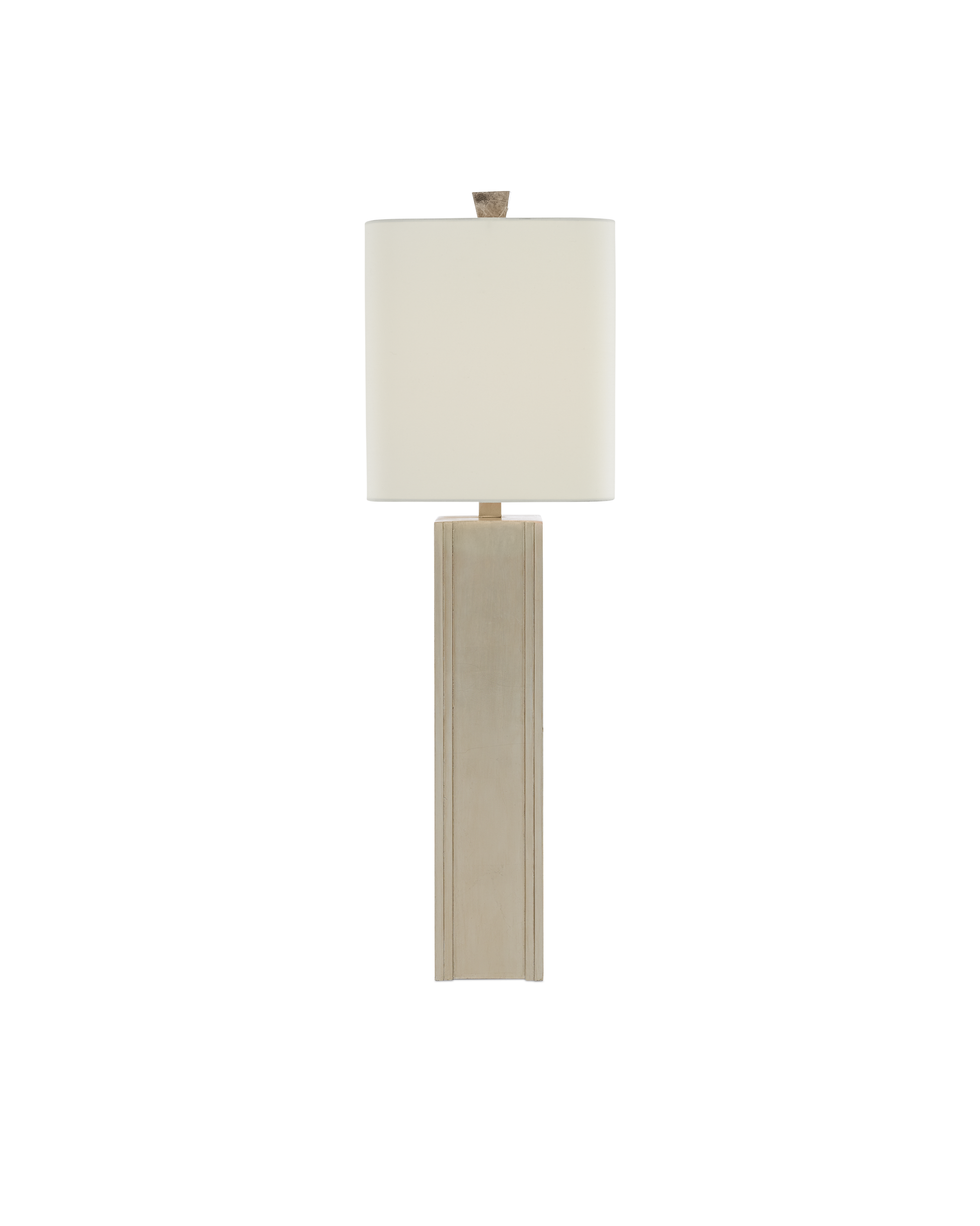 Our Calloway Table Lamp is a remarkable lamp covered in mica in a light mica finish. The natural material is surrounded by a wood frame in a silver leaf finish. A mica finial fastens the off-white shantung shade to the gray lamp to serve as a crowning touch.