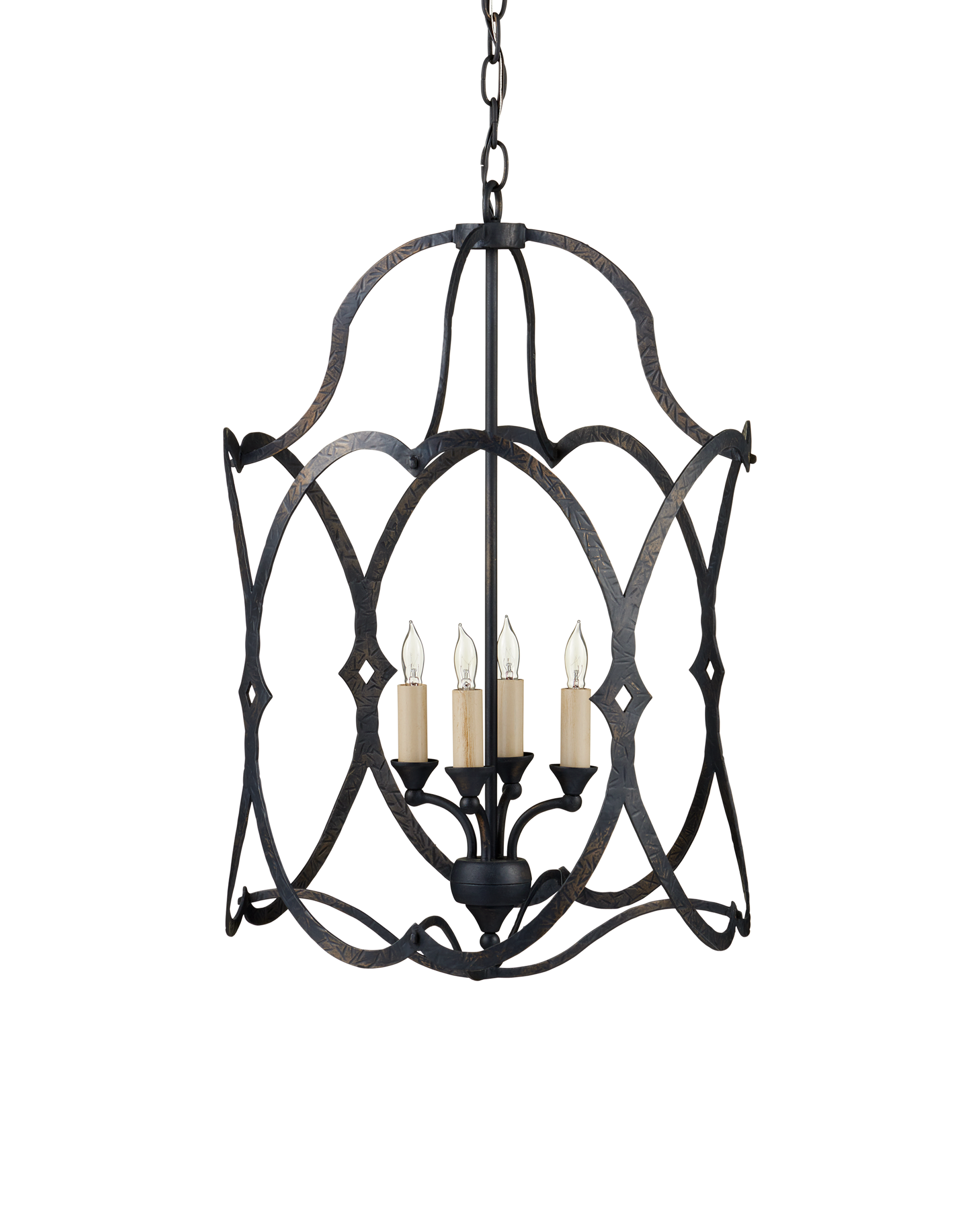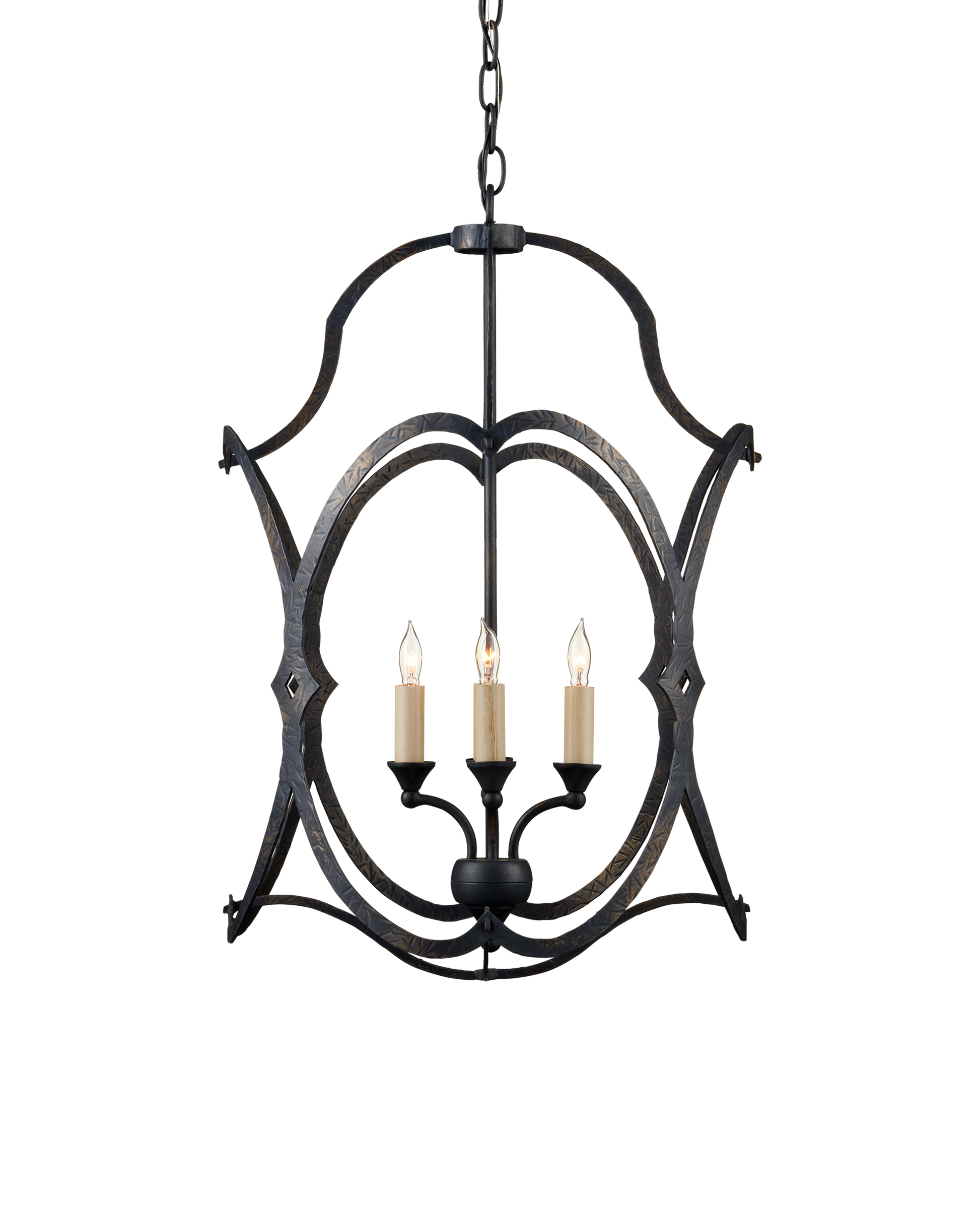 The Charisma Small Lantern has a lithesome shape in a lovely French black finish. Where the arcing ovals meet, tiny diamond shapes bring added charm to the black lantern that will invite classic Italian flair into interiors. Adjustable from 30" to 99" with use of included chain/rod kit/cable. If your space calls for a longer drop, additional chain/rods/cable is available for purchase.