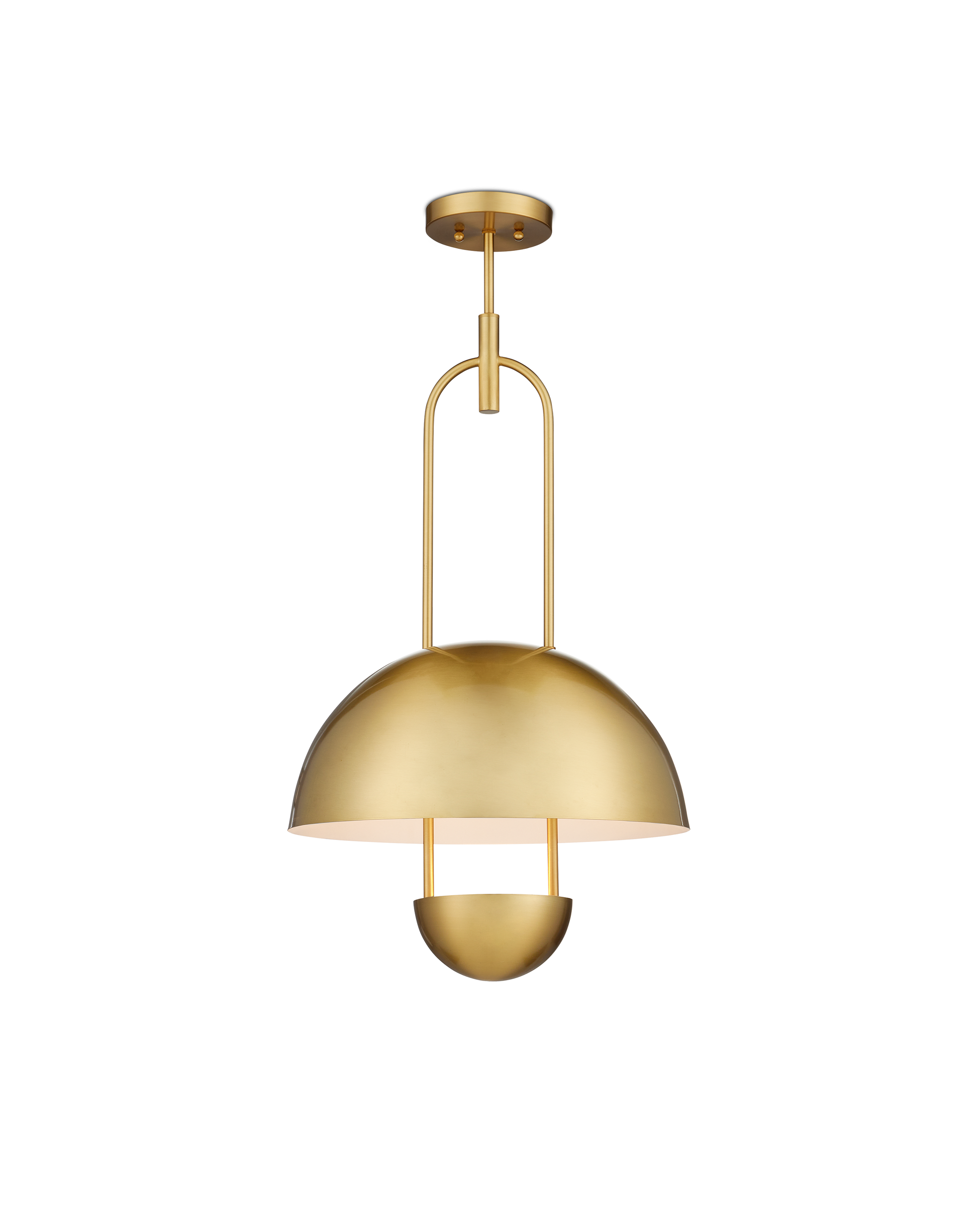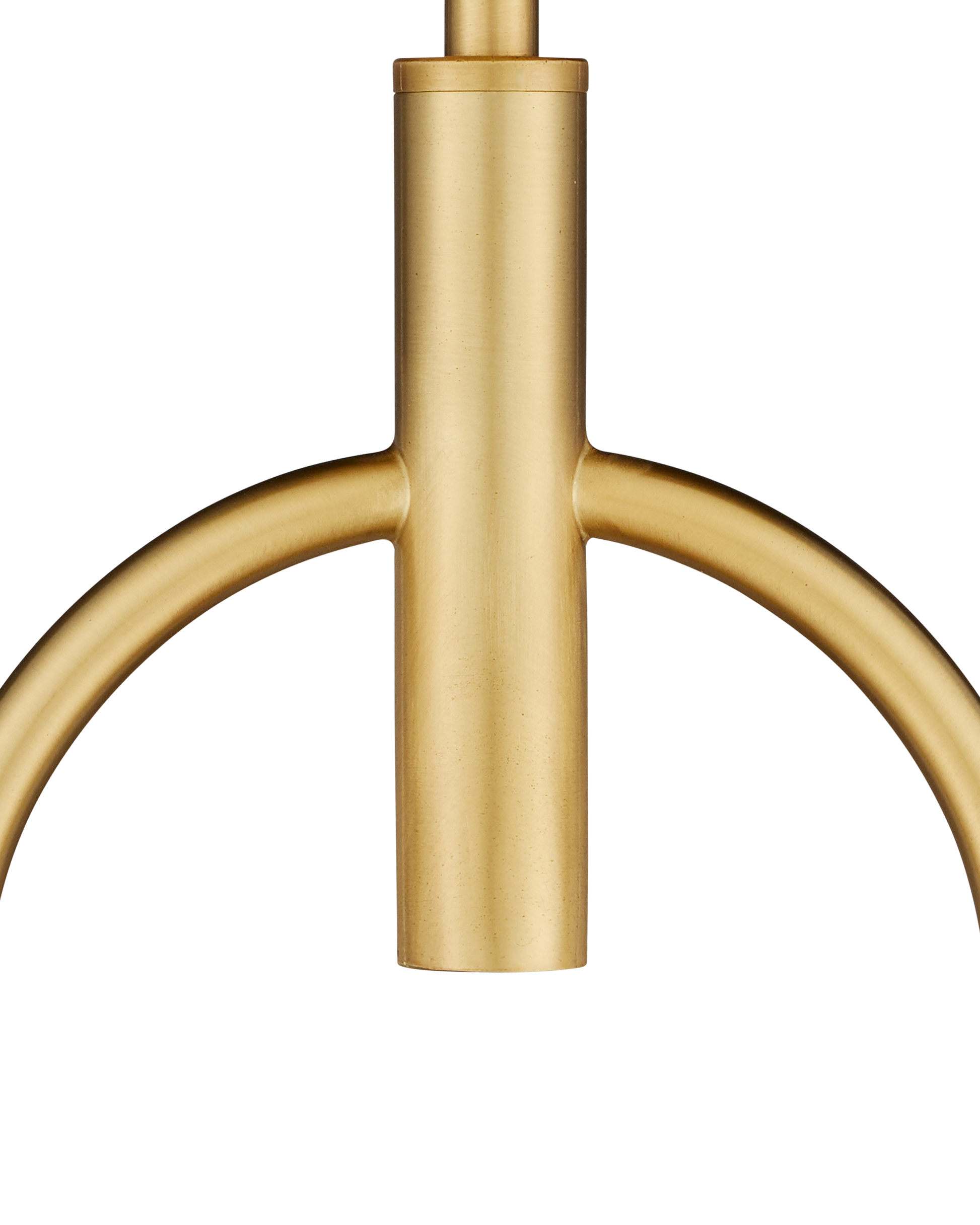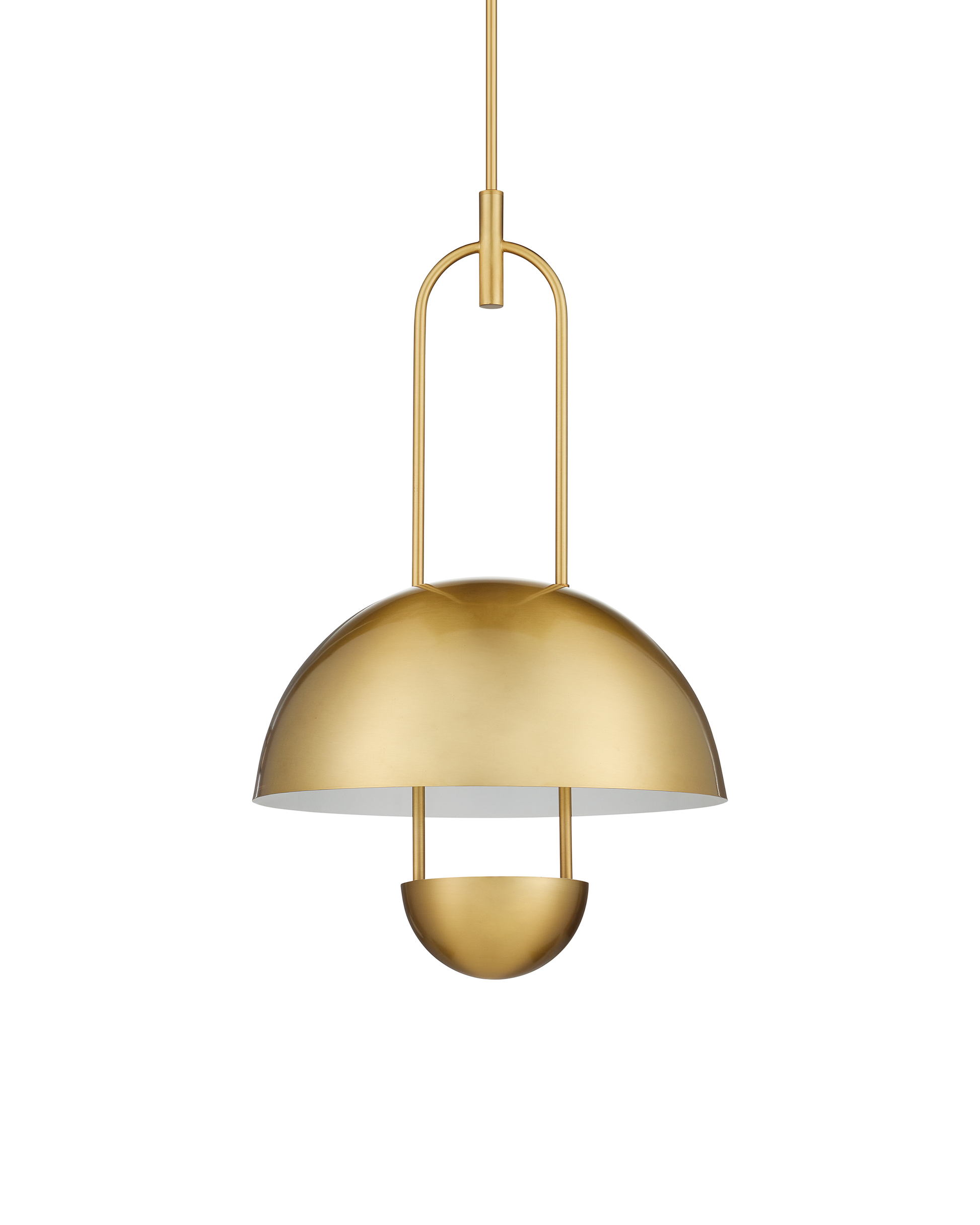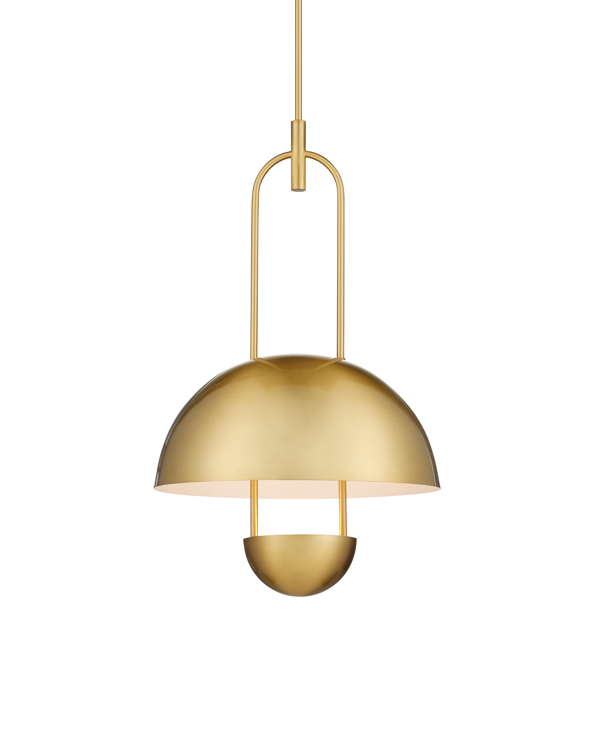 The marvelously modern Creighton Semi-Flush Mount was designed by Clarence Mallari. The larger and smaller dome shapes are made of spun metal with a brass finish on the exteriors and a white finish on the interiors to enhance the brightness of the light. The bottom cup is fitted with integrated LED technology. "A design detail that I like very much is the accent where the loop of the fixture connects to the rod," Mallari notes. Adjustable from 35" to 77" with use of included chain/rod kit/cable. If your space calls for a longer drop, additional chain/rods/cable is available for purchase.