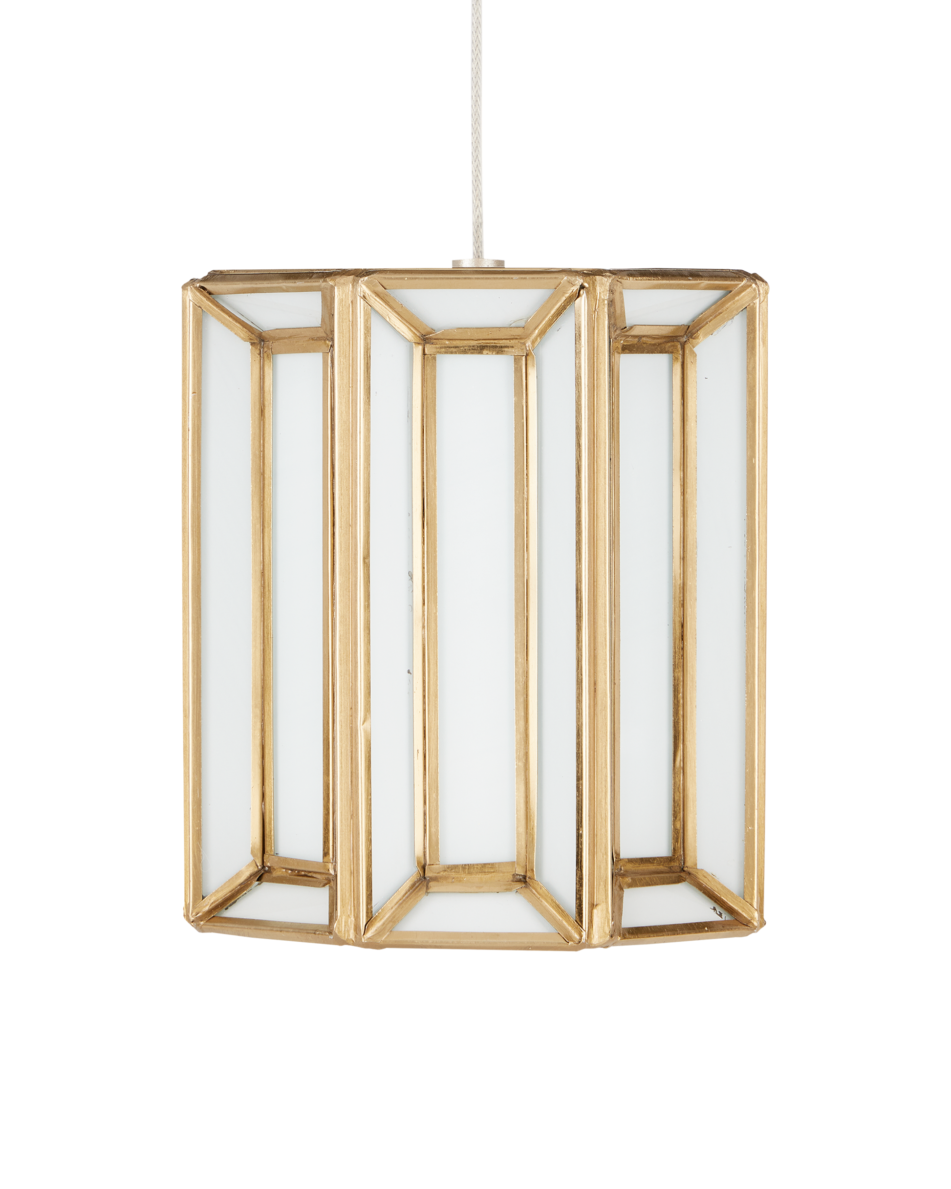 When a soft glow is desired, milk glass is one of the best materials to diffuse illumination. Our Daze Rectangular 15-Light Multi-Drop Pendant is made of articulated panels of white milk glass that are joined together by ribs of metal in an antique brass finish. This brass and white multi-drop pendant, designed by Clarence Mallari, will turn luminous when it is switched on. The canopy of this piece is luminous in a painted silver finish. This fixture is among Currey & Company's multi-drop pendant collection, which includes multiple configurations.
