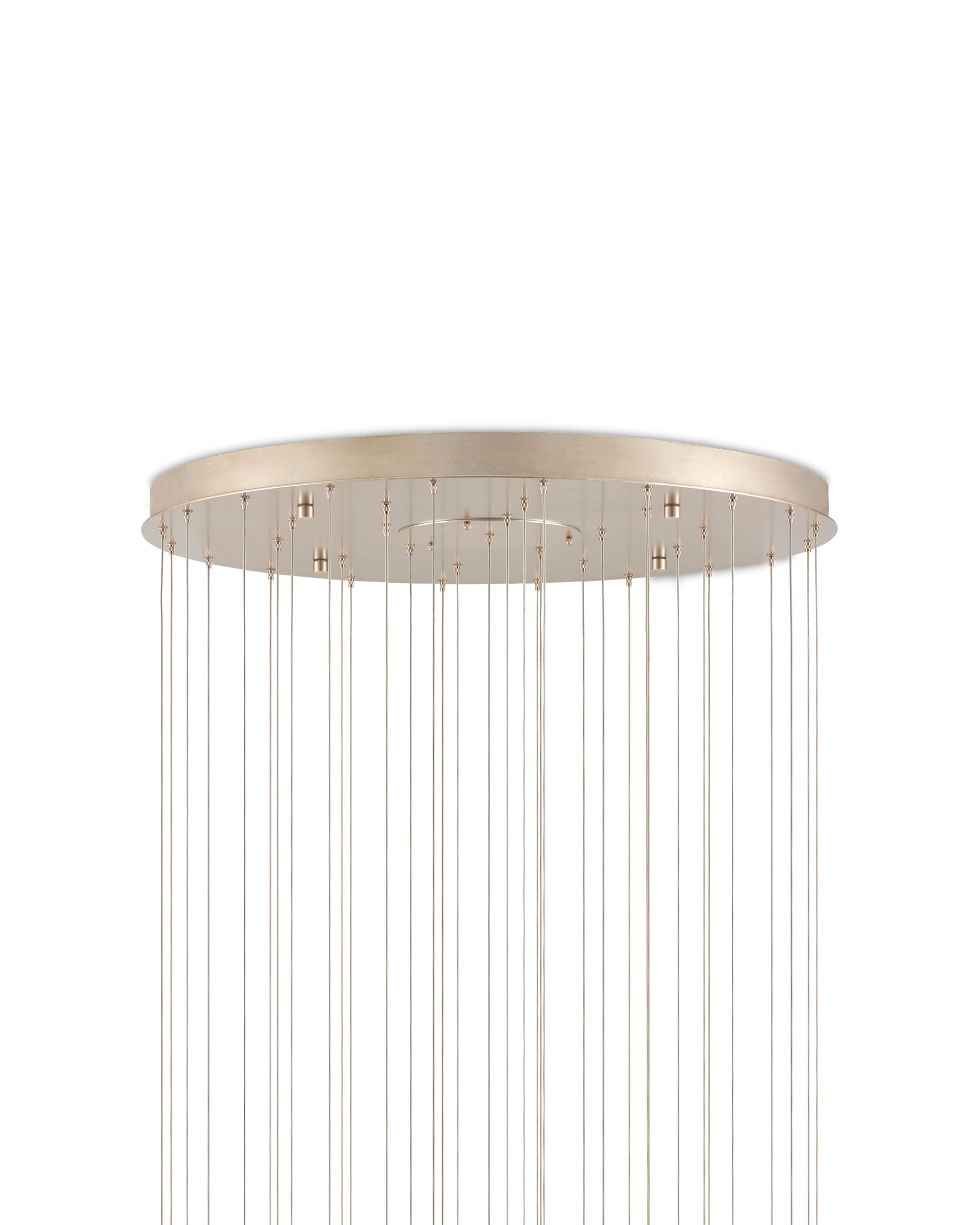 When a soft glow is desired, milk glass is one of the best materials to diffuse illumination. Our Daze 36-Light Multi-Drop Pendant is made of articulated panels of white milk glass that are joined together by ribs of metal in an antique brass finish. This brass and white multi-drop pendant, designed by Clarence Mallari, will turn luminous when it is switched on. The canopy of this piece is luminous in a painted silver finish. This fixture is among Currey & Company's multi-drop pendant collection, which includes multiple configurations.