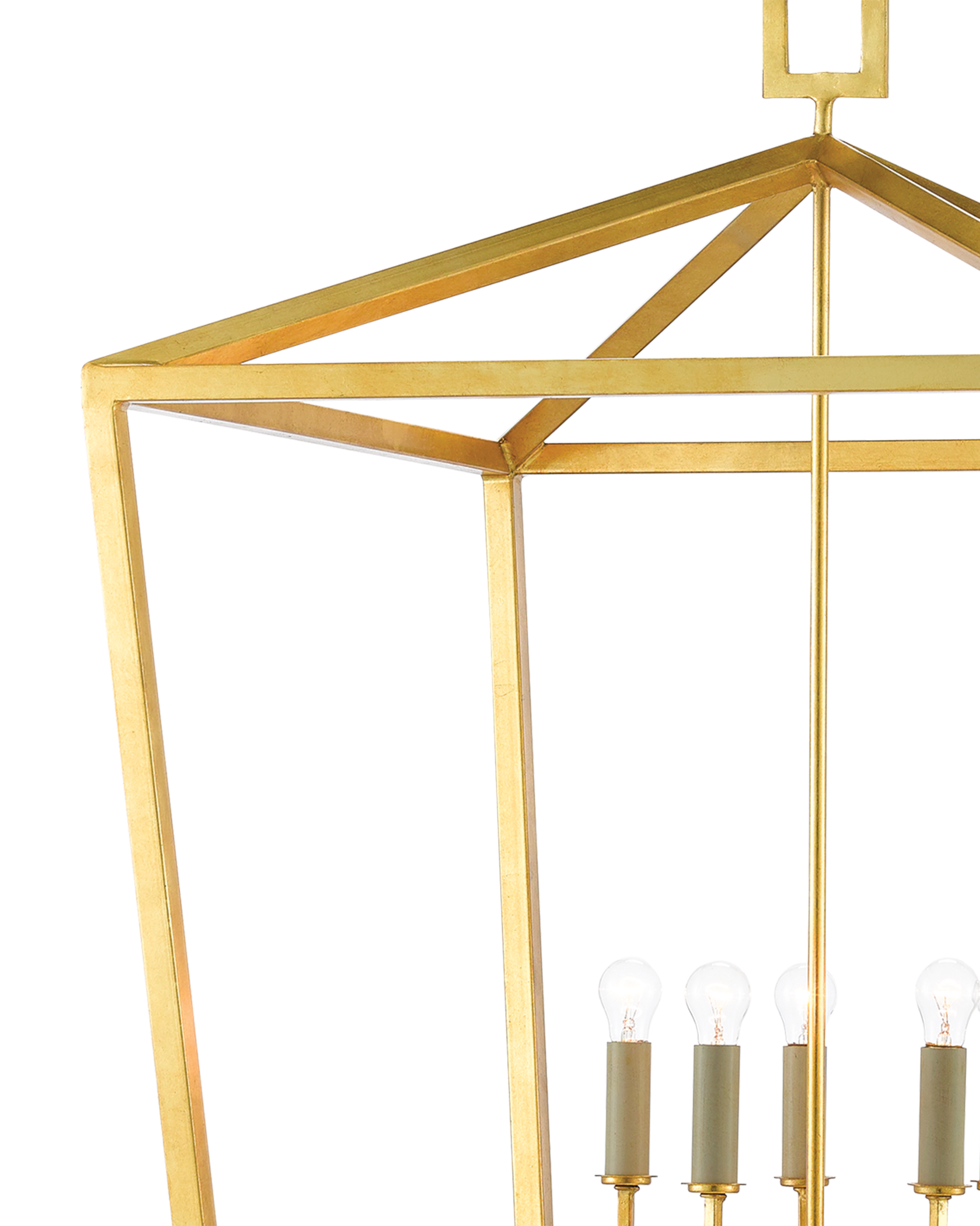 The Denison Gold Grande Lantern is a hammered wrought-iron fixture in a contemporary gold leaf finish. The classic lantern shape has stood the test of time to make it one of our most popular offerings. A design element of note is the square that fastens the lantern to the chain. Adjustable from 53" to 123" with use of included chain/rod kit/cable. If your space calls for a longer drop, additional chain/rods/cable is available for purchase.