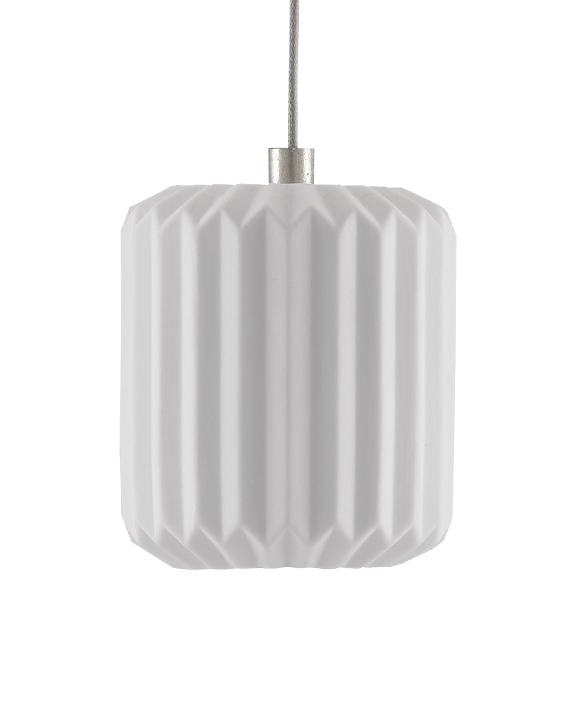 The Dove 7-Light Multi-Drop Pendant has pleated shades made of pale ceramic that diffuse the light wafting through them. The indentions and ridges on the shades of the white pendant bring a textural feel to this luminary even though it is monochromatic. The canopy of this piece is luminous in a painted silver finish. This fixture is among Currey & Company's multi-drop pendant collection, which includes multiple configurations.