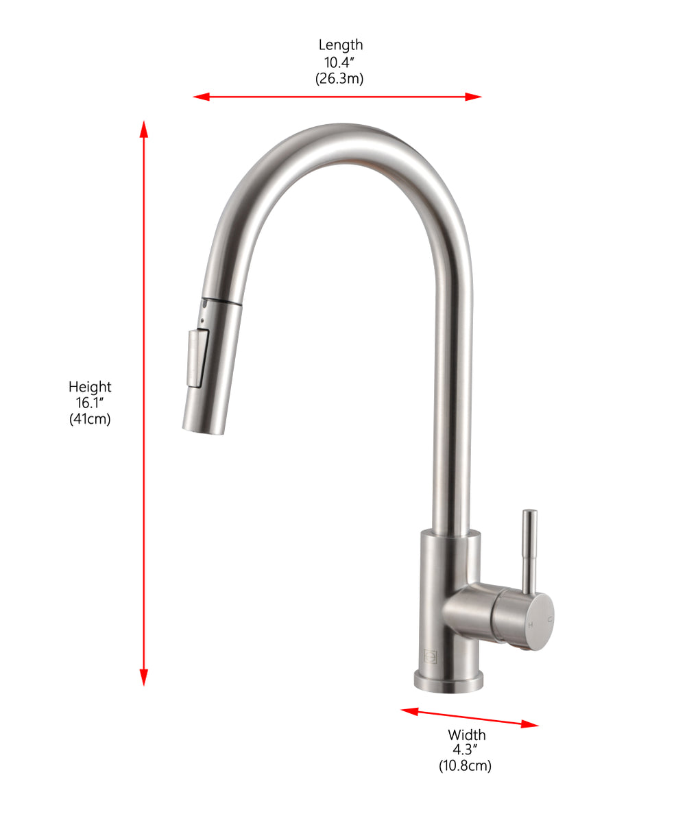 Discover the epitome of modern sophistication in our kitchen faucet collection, an exquisite blend of elegance and functionality. Crafted from premium stainless steel, this faucet harmoniously merges durability with timeless design, resisting corrosion for enduring quality. The gooseneck style not only exudes charm but also facilitates effortless cleaning of sizable cookware. Featuring a single-handle lever for seamless water control, it offers precise adjustments for temperature and flow, simplifying kitchen tasks. Enjoy the convenience of a pull-down sprayer with a 63-inch hose, extending 12 inches for enhanced maneuverability around the sink. Switch effortlessly between spray modes—gentle for delicate tasks or aerated for powerful cleansing—maximizing efficiency at a flow rate of 1.8 gallons per minute. With UPC and IAPMO certifications ensuring safety and quality, this faucet arrives complete with 27.5-inch supply lines for a stress-free installation. Its high-quality ceramic cartridge guarantees drip-free, enduring functionality, promising a reliable and long-lasting addition to your kitchen.