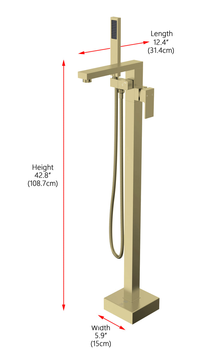 Indulge the ultimate in bath versatility with our bathtub faucet, complete with a convenient 35-inch long hand shower, bringing flexibility to your bathing routine. Choose between a soothing bath or a targeted hand shower experience, catering to your preferences. Crafted from premium stainless steel, our faucet not only adds a modern aesthetic to your bathroom but is also corrosion-resistant and built to last. With included supply lines, installation becomes hassle-free, saving you time and effort. The faucet's handy diverter lever enables effortless switching between the faucet and hand shower, allowing for a personalized bathing experience. Our bathtub faucet is UPC and IAPMO certified, ensuring lead-free materials and top-notch quality for your safety and satisfaction. Enjoy a maximum flow rate of 5.6 gallons per minute at 80 psi, offering robust water flow while conserving water and reducing utility costs. Embrace the elegance of our floor-mounted bathtub faucet, a space-saving alternative that exudes contemporary luxury, standing gracefully on your bathroom floor and complementing your decor with a touch of sophistication.