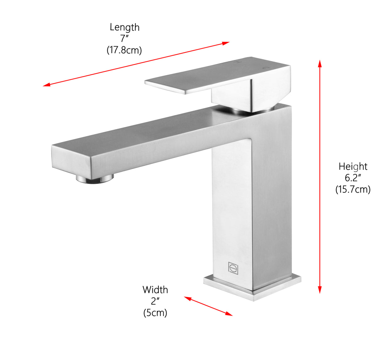Our vanity faucet, featuring a single-handle design, ensures effortless water control for your convenience. Crafted from durable stainless steel, this faucet not only resists corrosion but also brings a touch of contemporary sophistication to your vanity while promising long-lasting durability. With supply lines included, installation becomes a hassle-free endeavor, saving your valuable time. The handle's clear indicators for hot and cold temperatures make selecting your desired water temperature a simple and confident task. Standing tall, this compact faucet design is versatile and effortlessly complements various vanity styles. Its single-hole installation design ensures an easy setup without the need for complex installations or extra holes. Offering a maximum flow rate of 1.5 gallons per minute at 60 PSI, this faucet delivers a gentle yet efficient water flow, aiding in water conservation and reduced utility bills. Equipped with a single self-contained ceramic disc valve, this faucet ensures lasting reliability and precise volume and temperature control, ensuring a dependable performance for years to come.