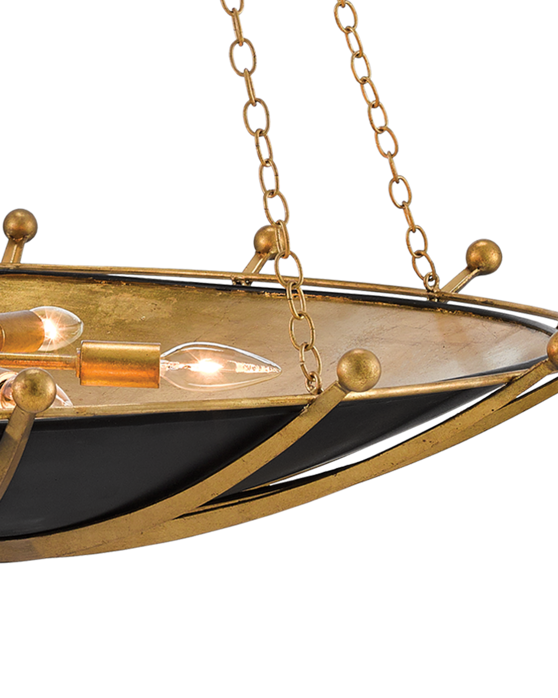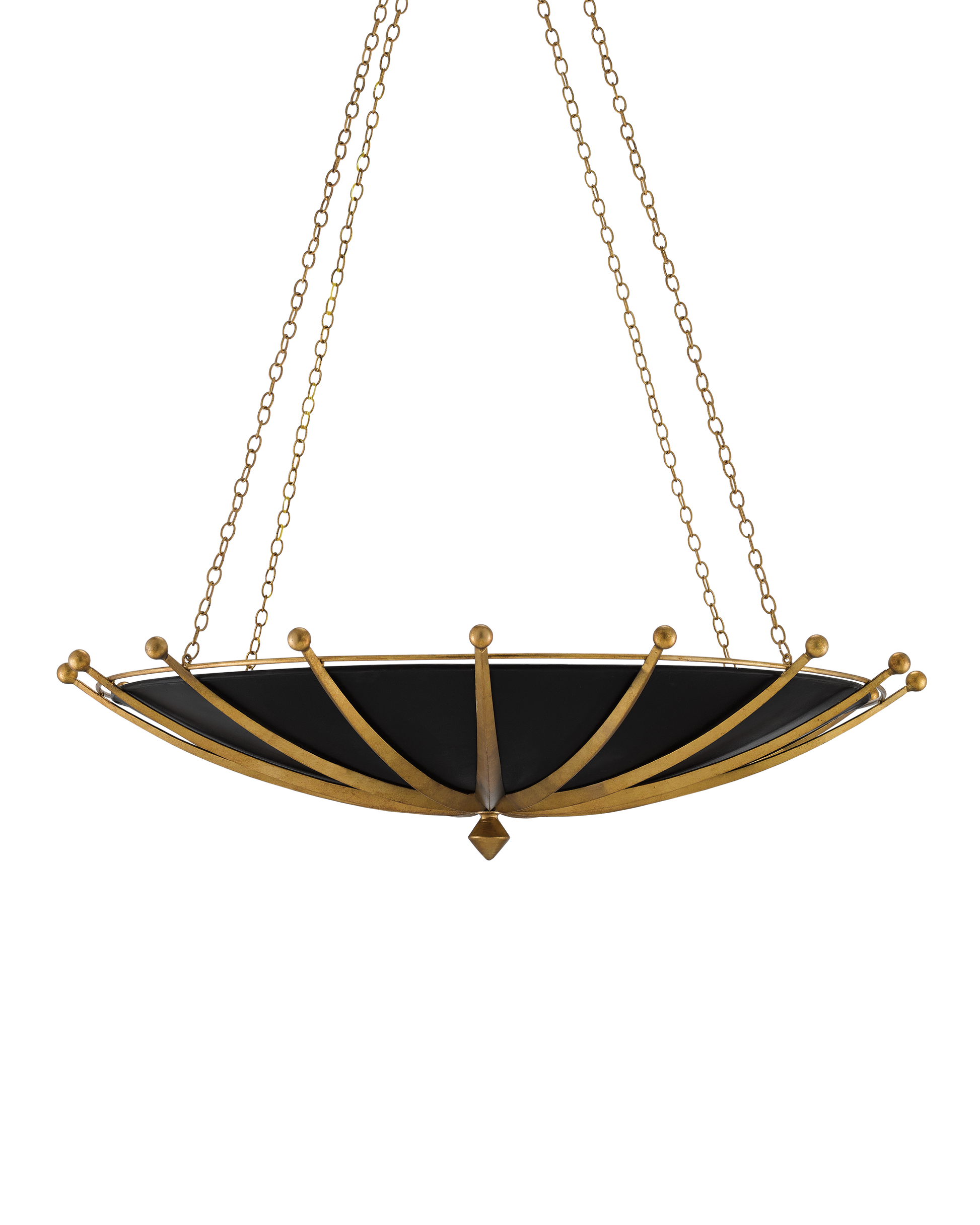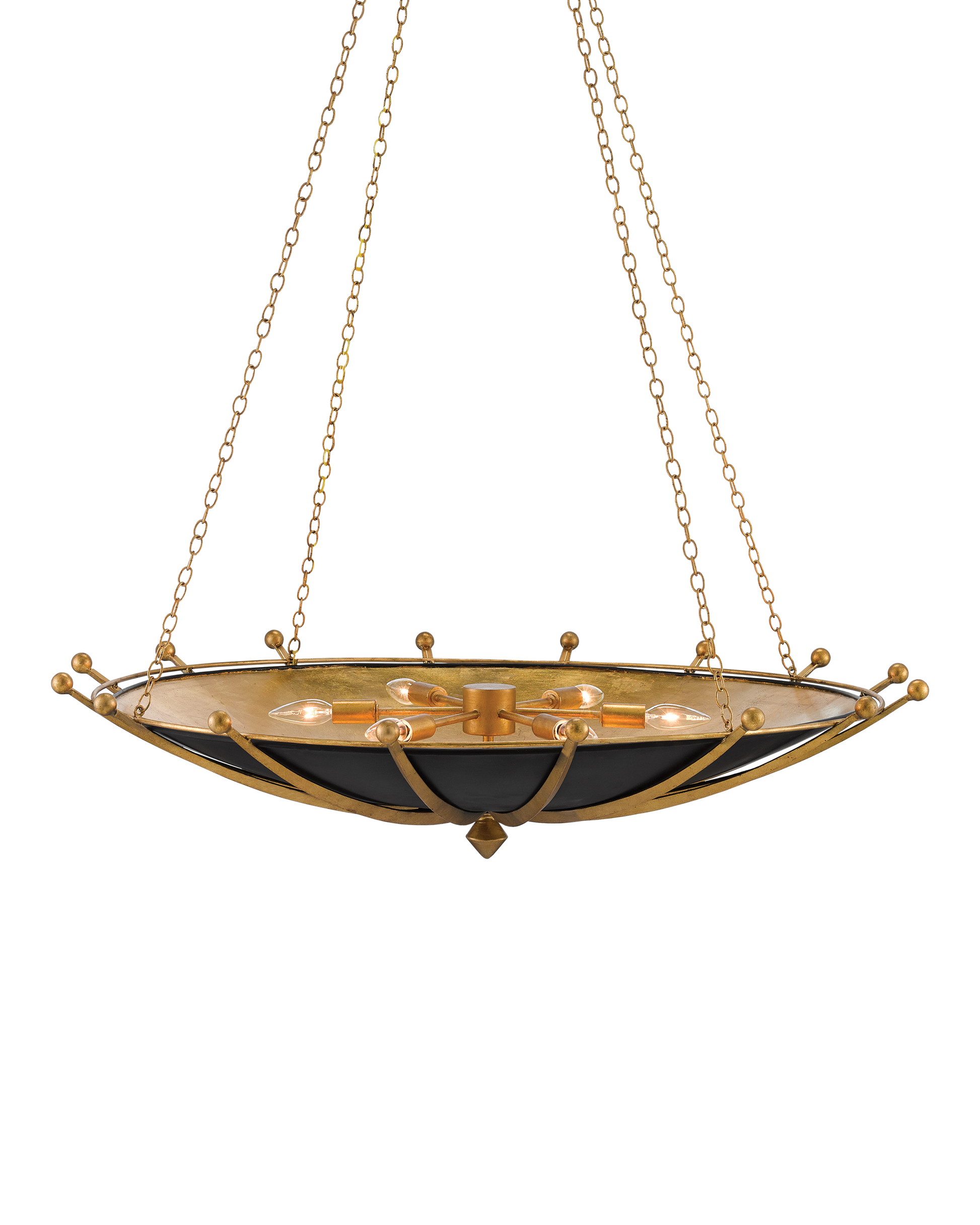 The Fontaine Chandelier oozes Hollywood glamour. A sophisticated design note is the lustrous mix of finishes, which include antique gold leaf, contemporary gold leaf, and satin black. These bring a sumptuousness to the feel of this gold and black chandelier. Adjustable from 35.25" to 84.25" with use of included chain/rod kit/cable. If your space calls for a longer drop, additional chain/rods/cable is available for purchase.