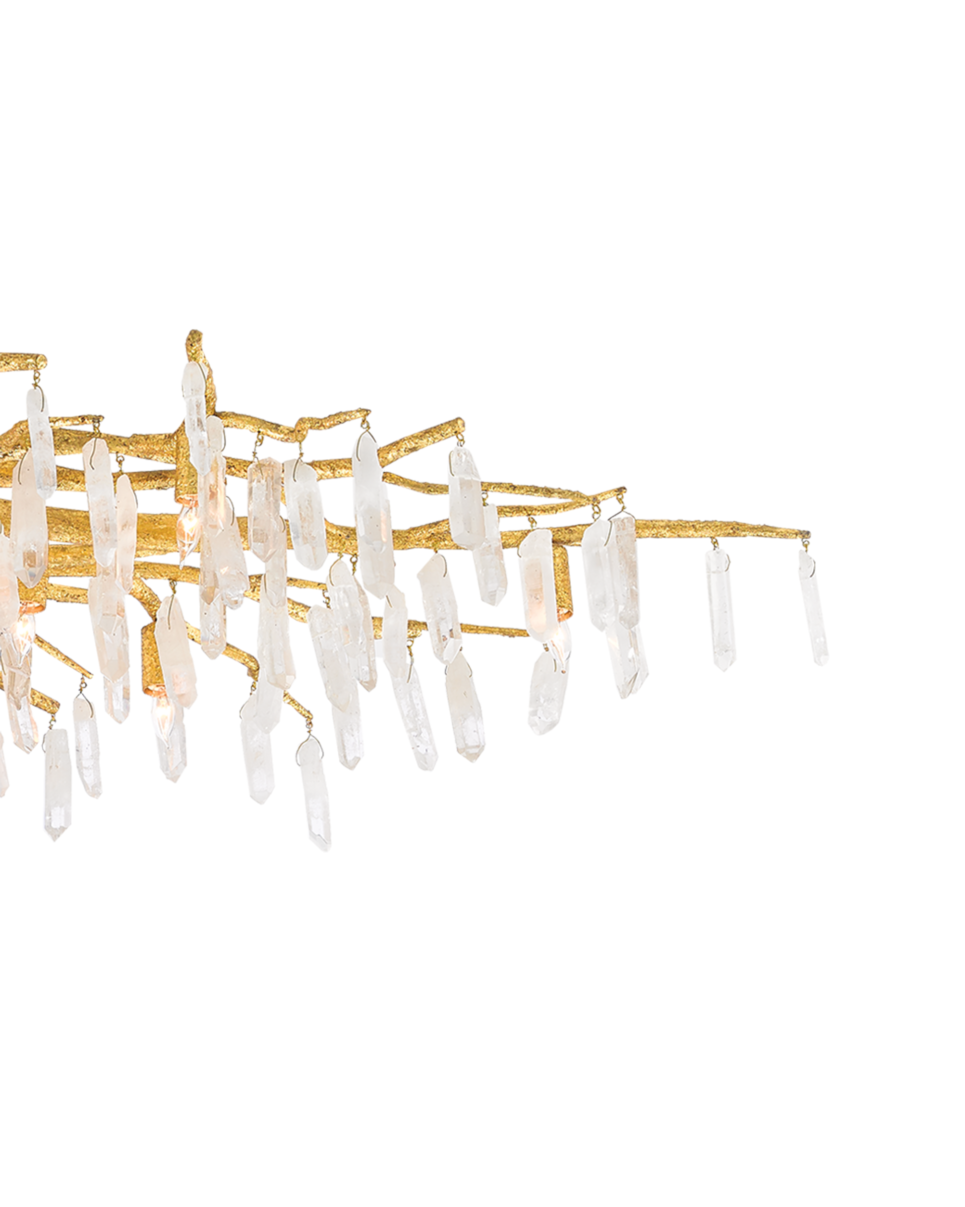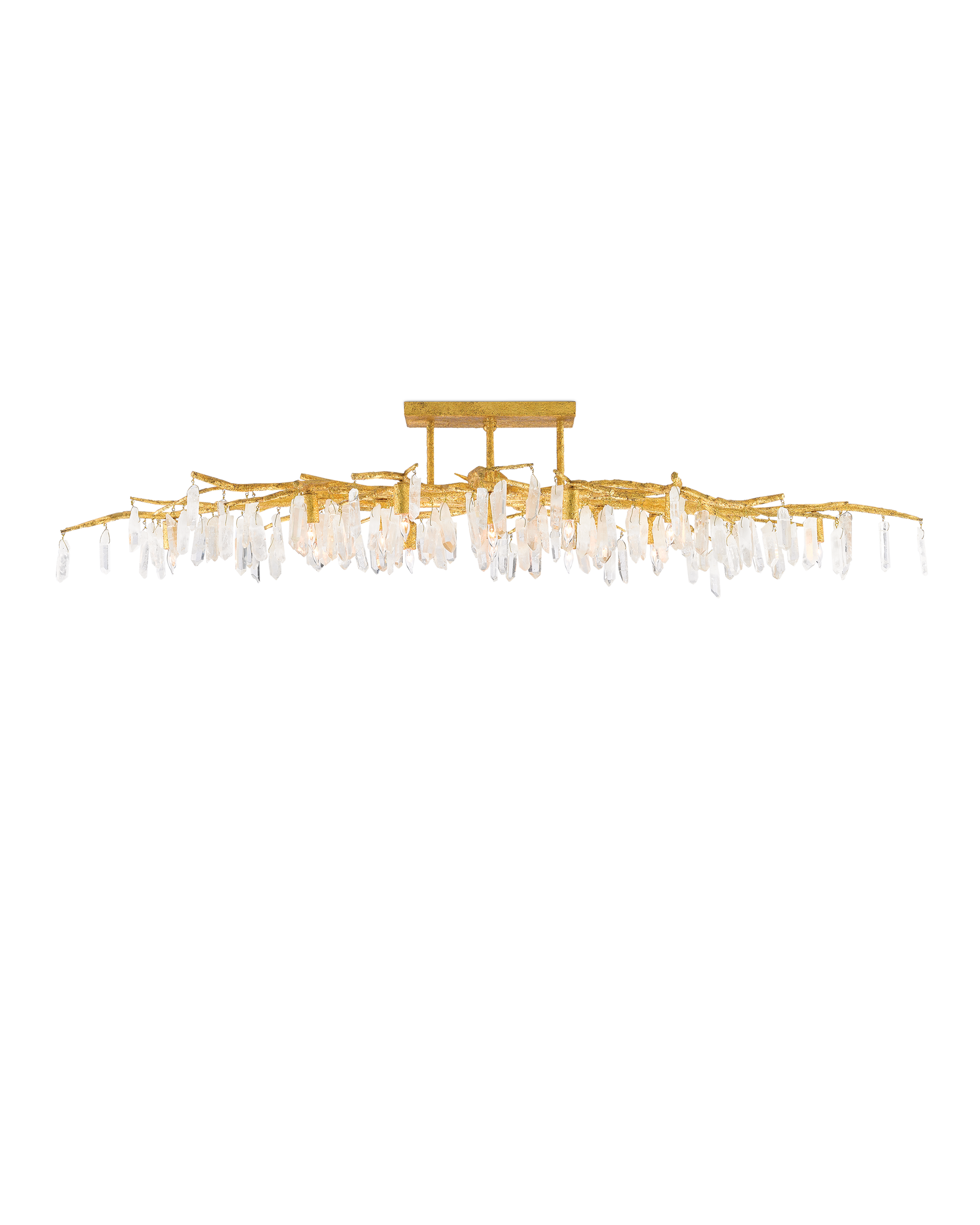 The Forest Light Semi-Flush is an exceptional work of art dripping with crystals. The washed Lucerne gold finish is a perfect complement to the quartz on this sculptural gold semi-flush that echoes nature with its tree-like branches.