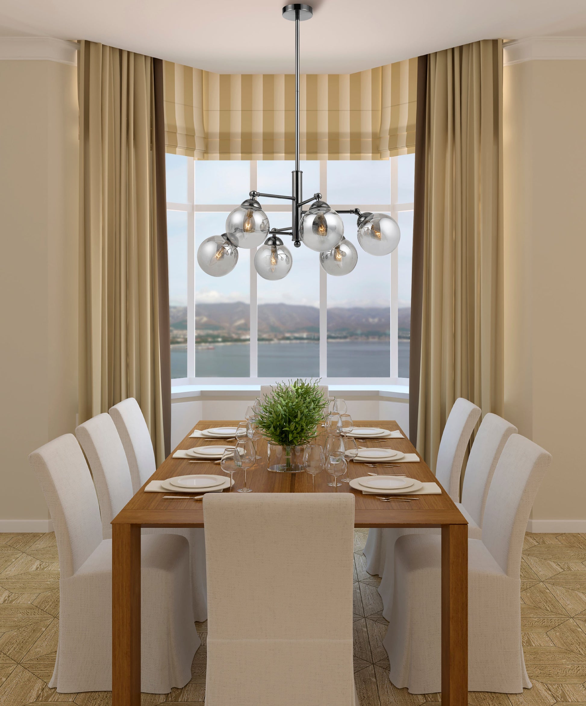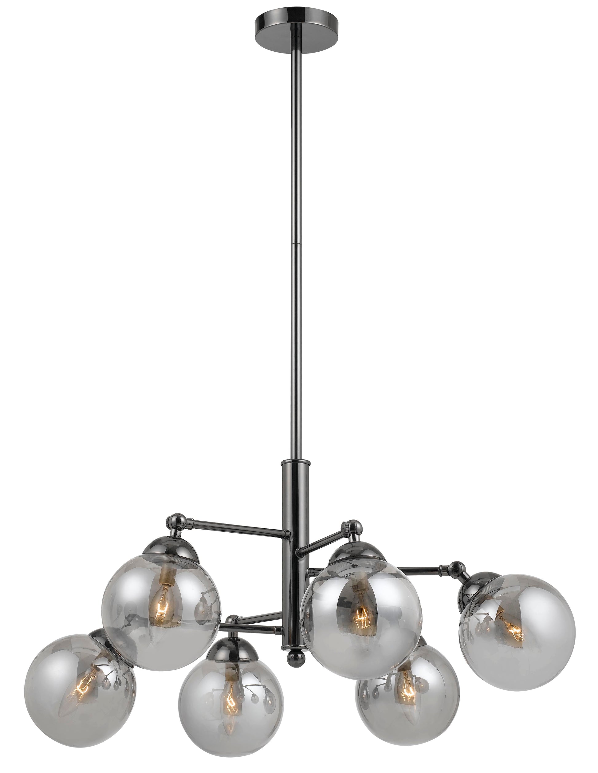 15.3" Height Six Glass Pendant with Canopy in Gun metal