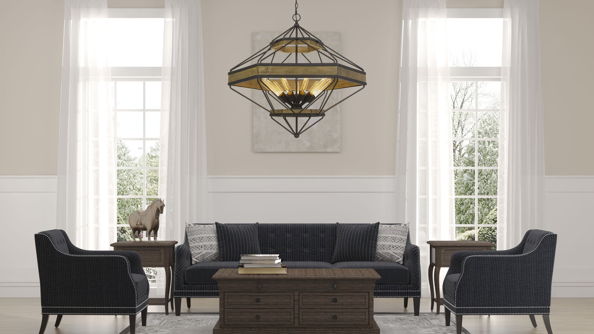 Alicante 60W X 9 Pine Wood/Metal Chandelier (Edison Bulbs Not Included)