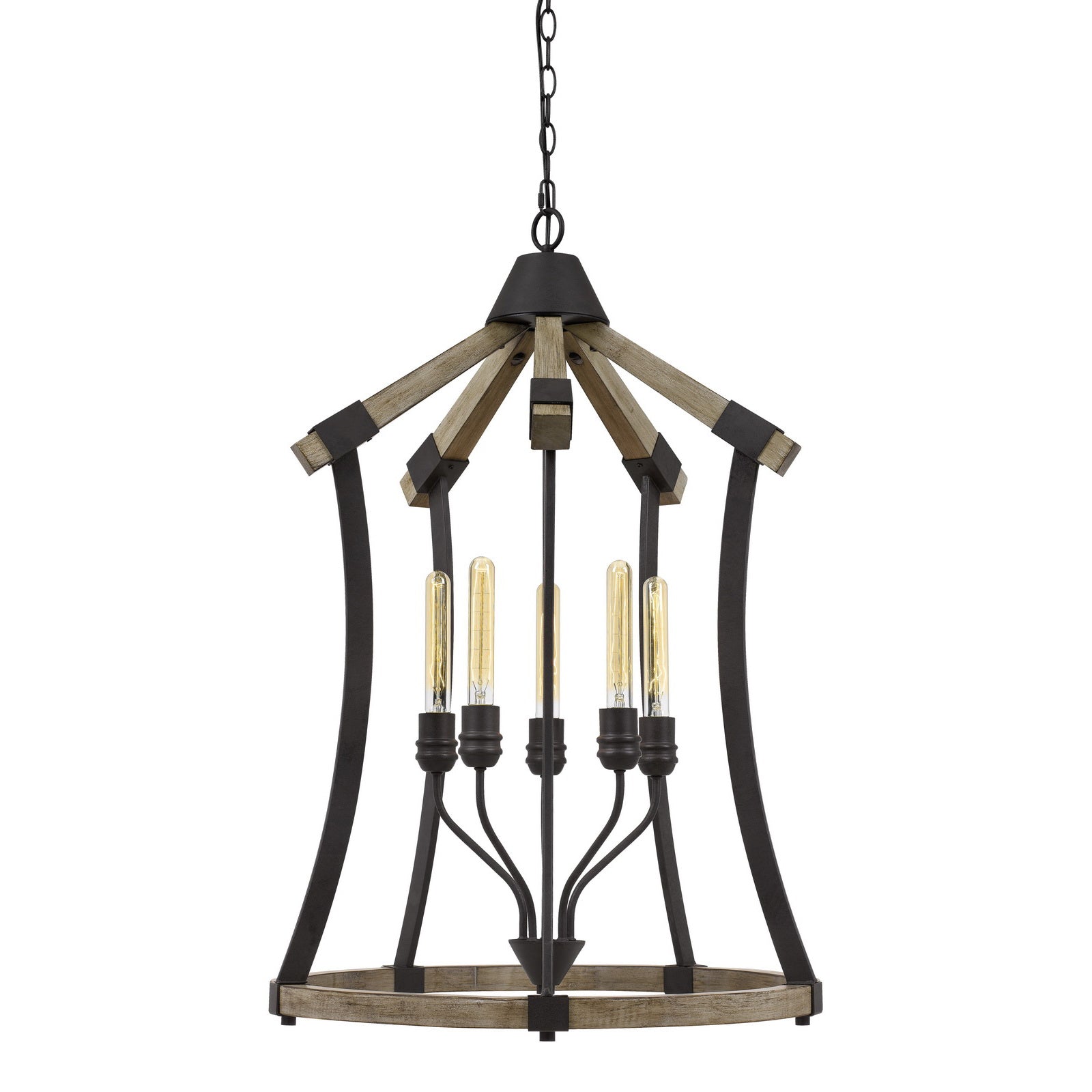Dali 60W X 5 Metal/Pine Wood Chandelier (Edison Bulbs Not Included)