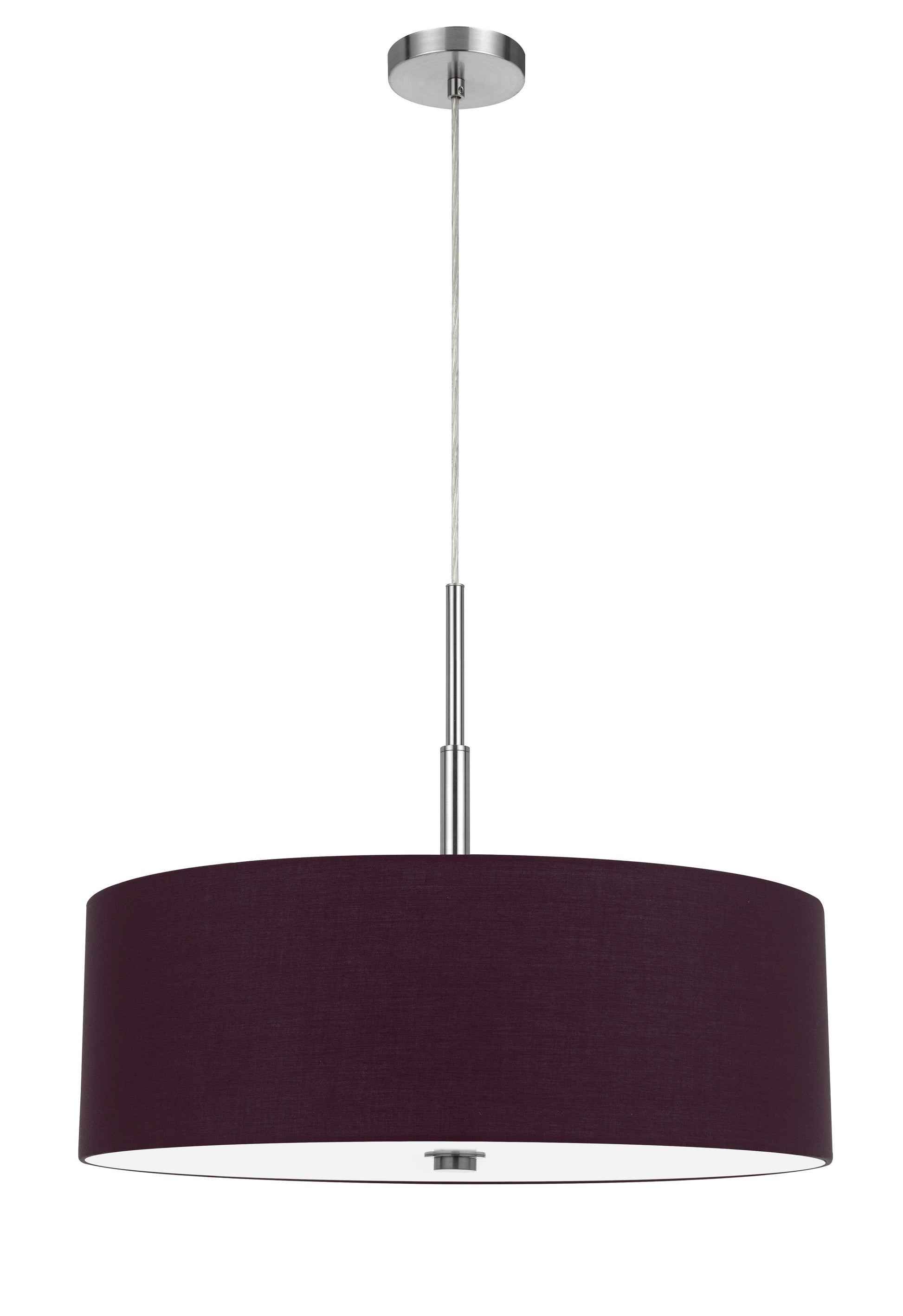 Add a pop of color to your décor with this plum drum pendant light. It features a smooth fabric drum