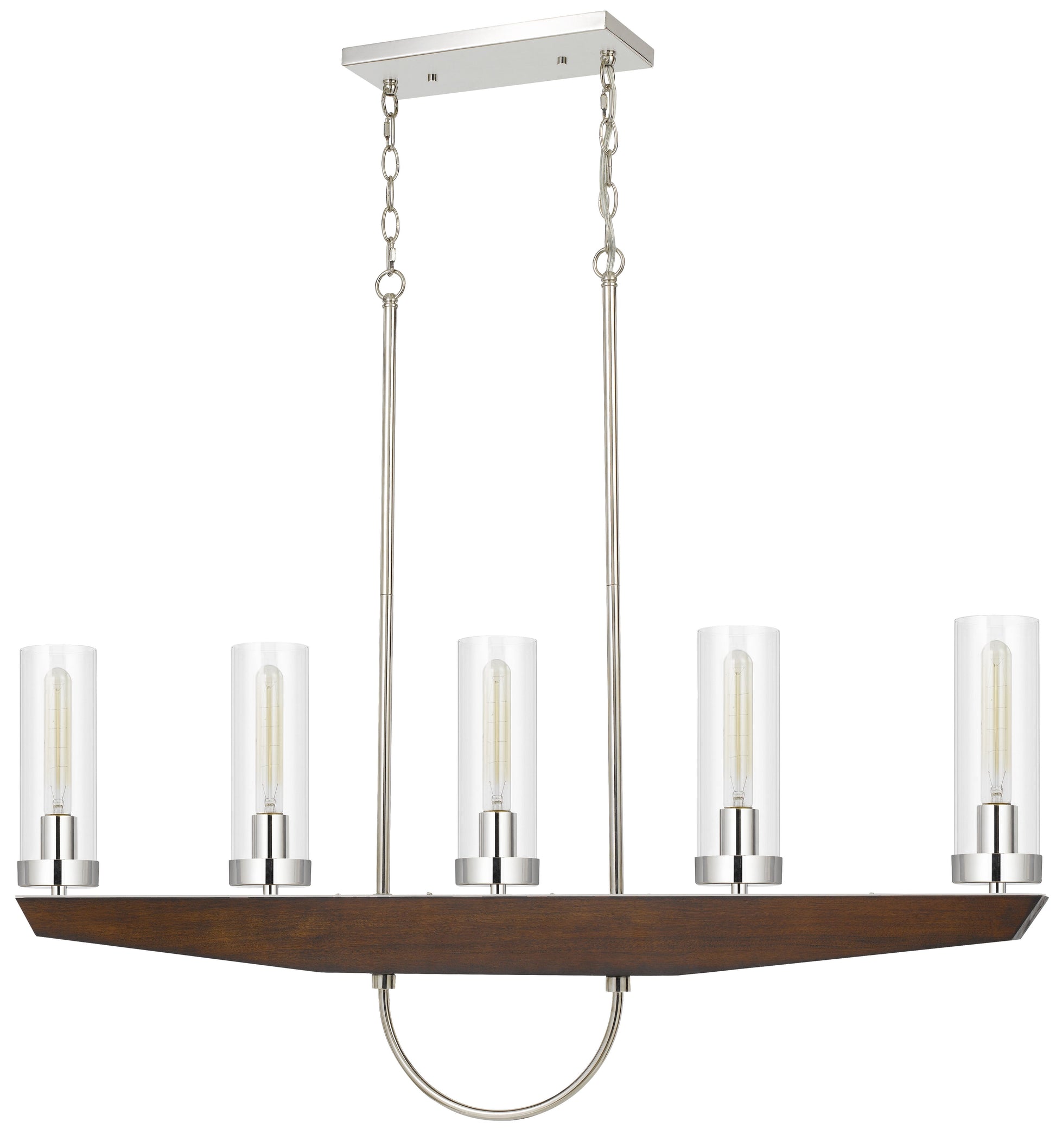 60W x 5 Ercolano pine wood/metal island chandelier with clear glass shade (Edison bulbs NOT included)