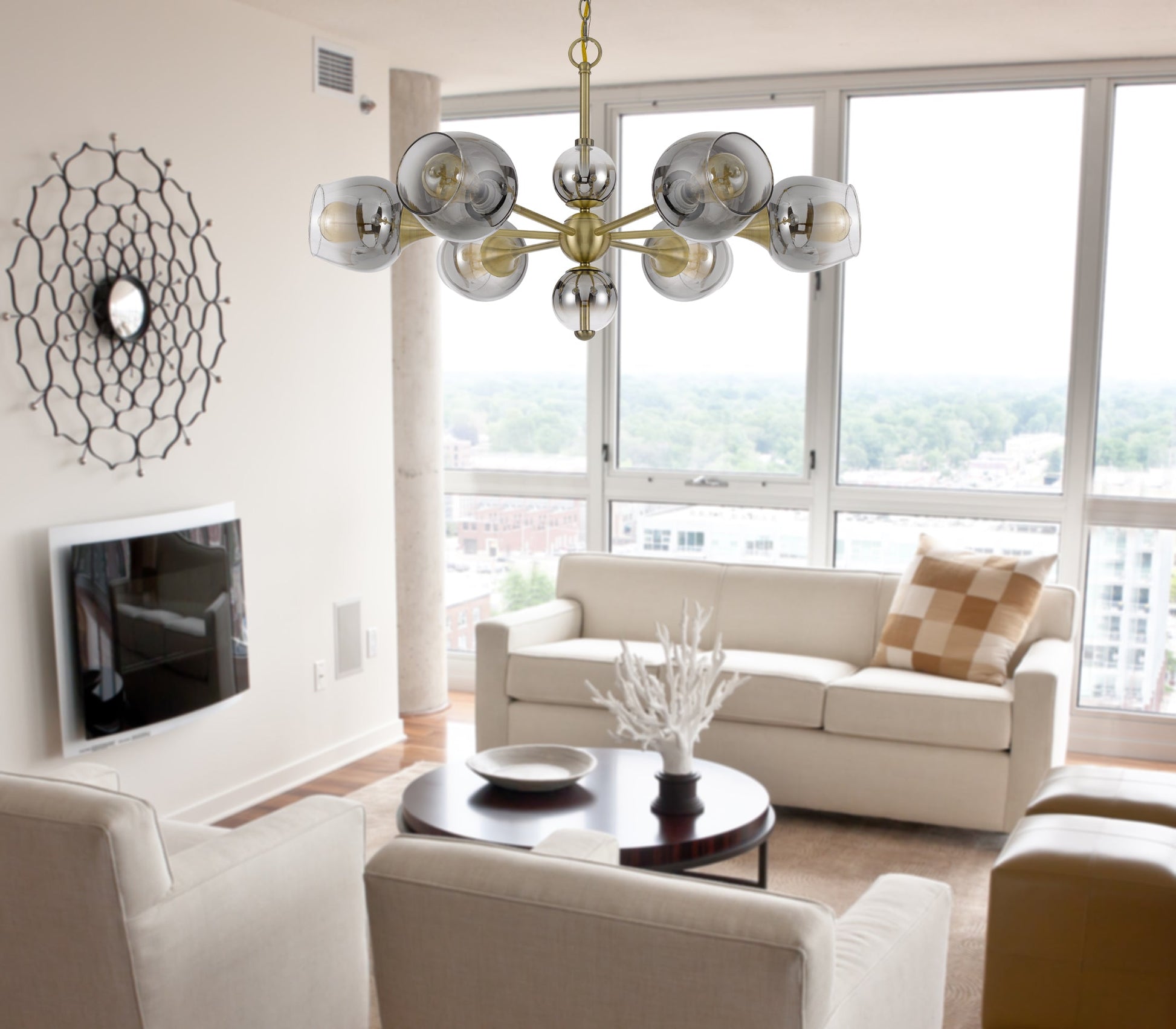 60W X 6 Pendleton Metal Chandelier With Electoral Plated Smoked Glass Shades