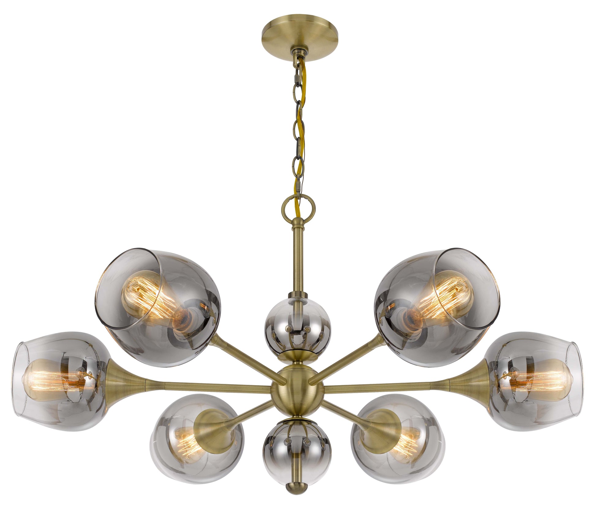60W x 6 Pendleton metal chandelier with electoral plated smoked glass shades