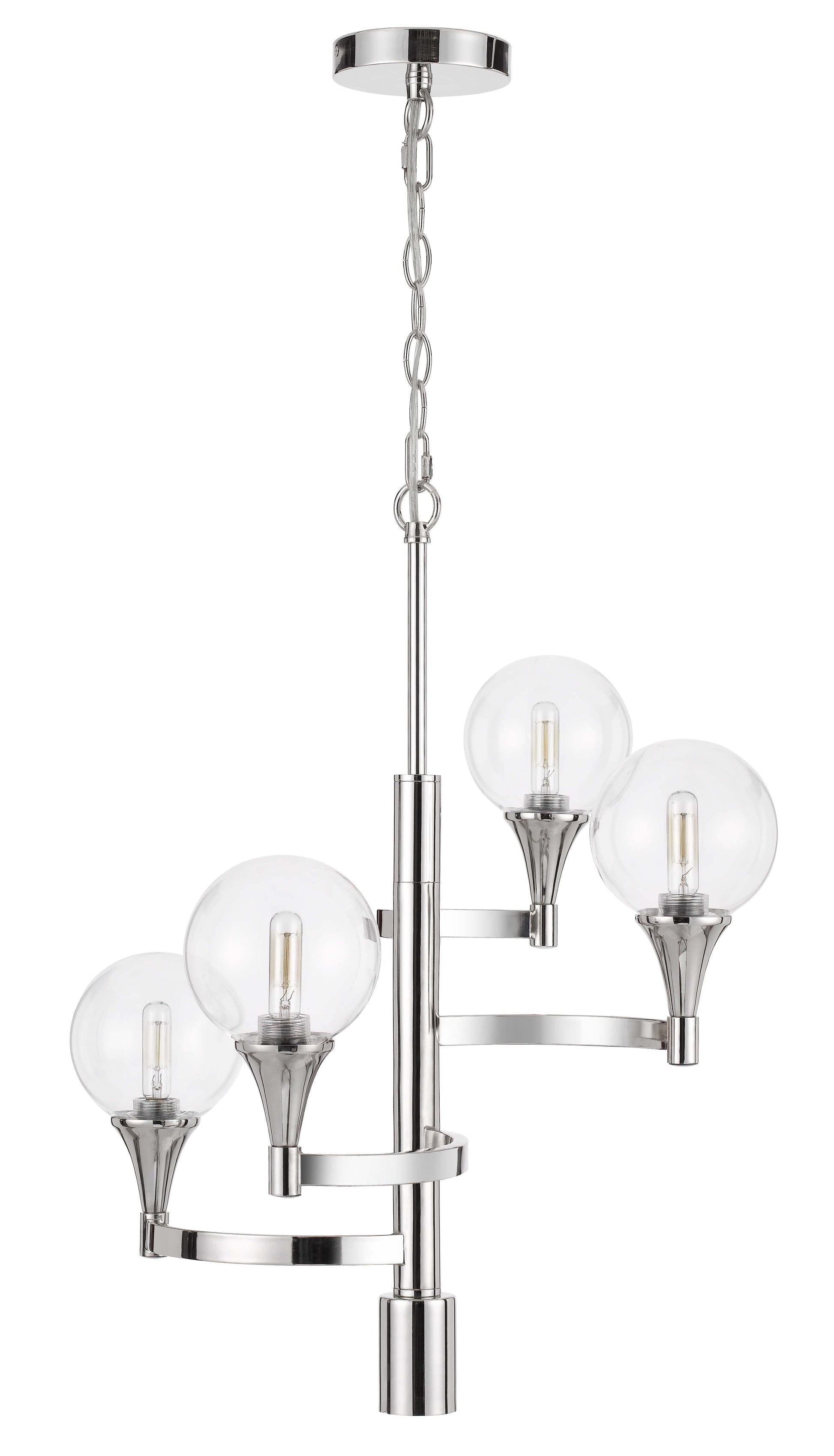 15W x 4 Milbank metal chandelier with a 3K GU10 LED 6W downlight (only down Light GU10 bulb included) clear round glass shades