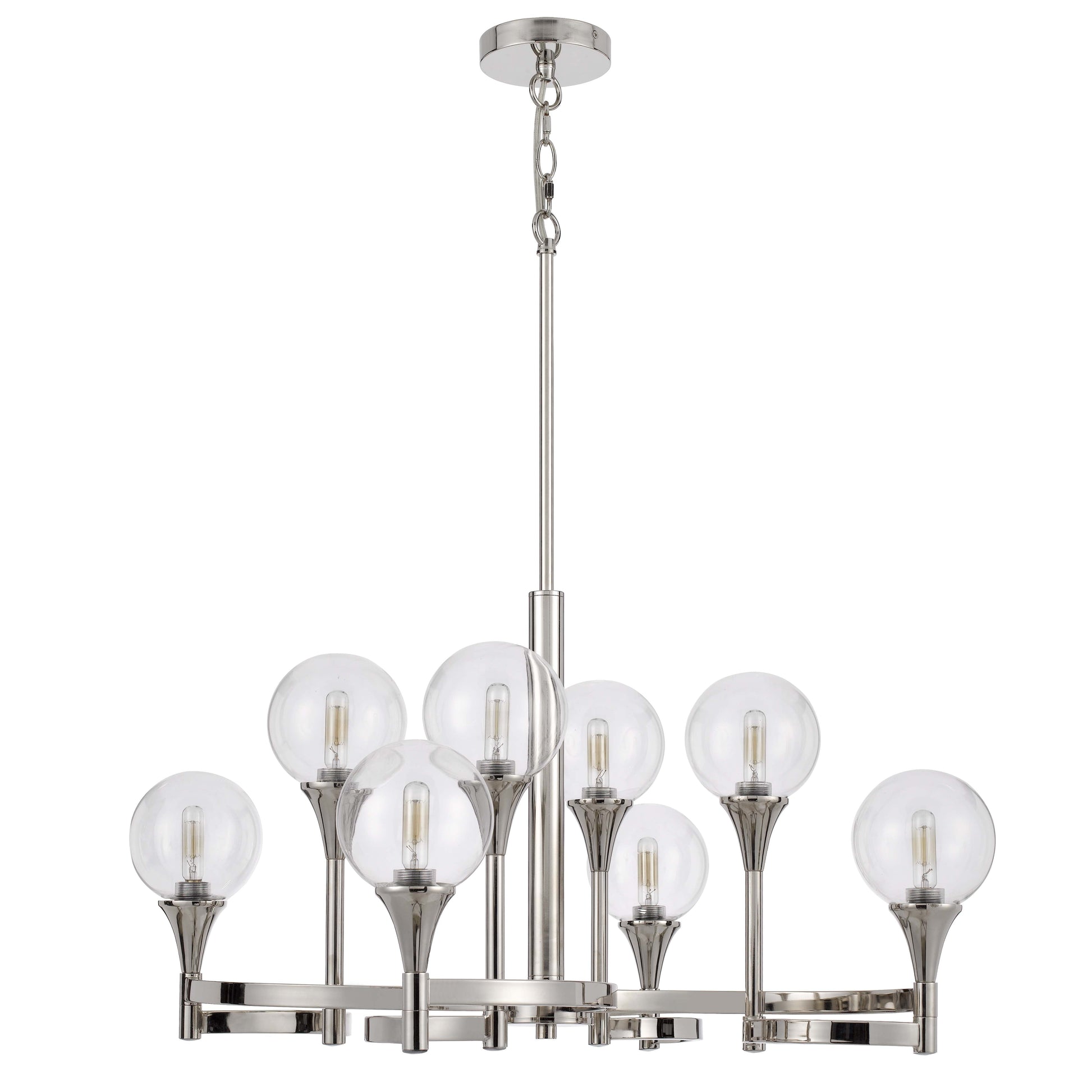 15W X 8 Milbank Metal Chandelier And Clear Round Glass Shades