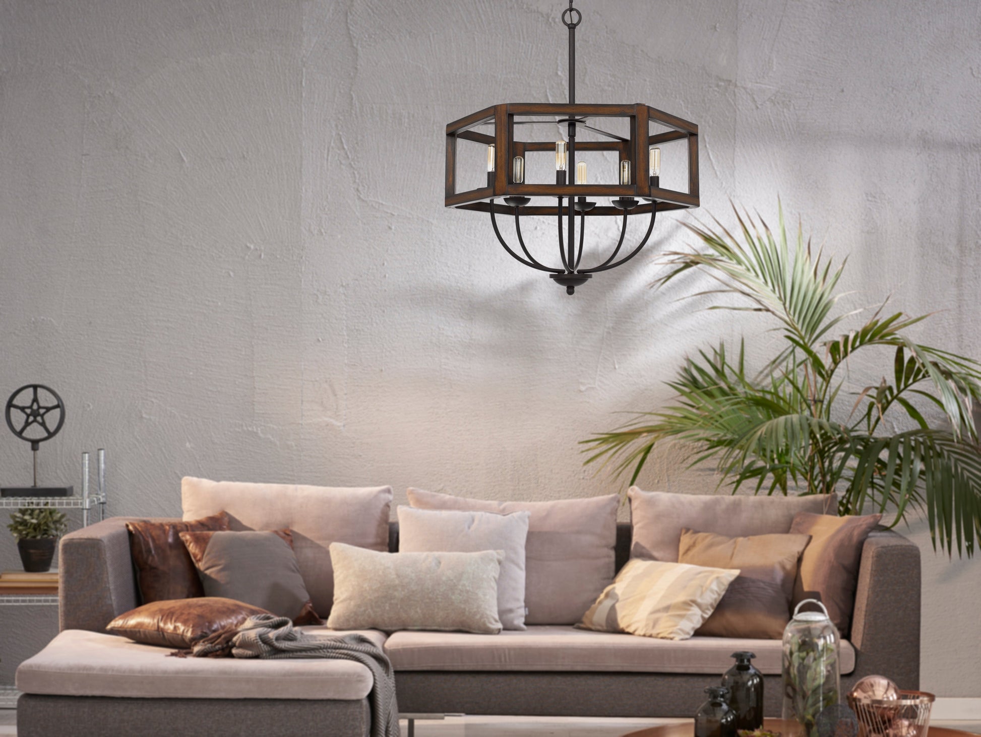 60W x 6 Renton hexagon rubber wood / metal chandelier