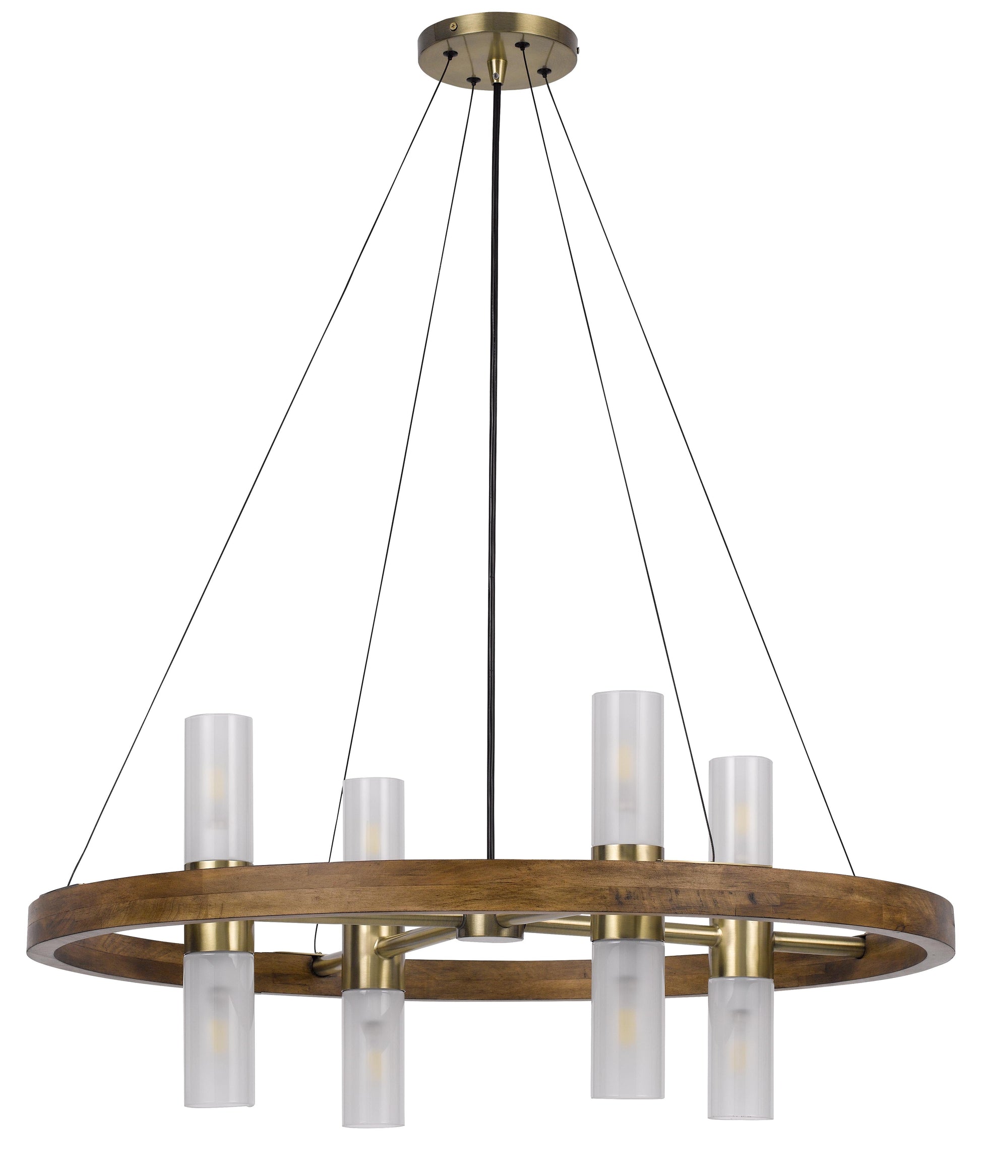 40W x 8 Hempstead Birch wood cylinder chandelier with adjustable steel cable and glass shades
