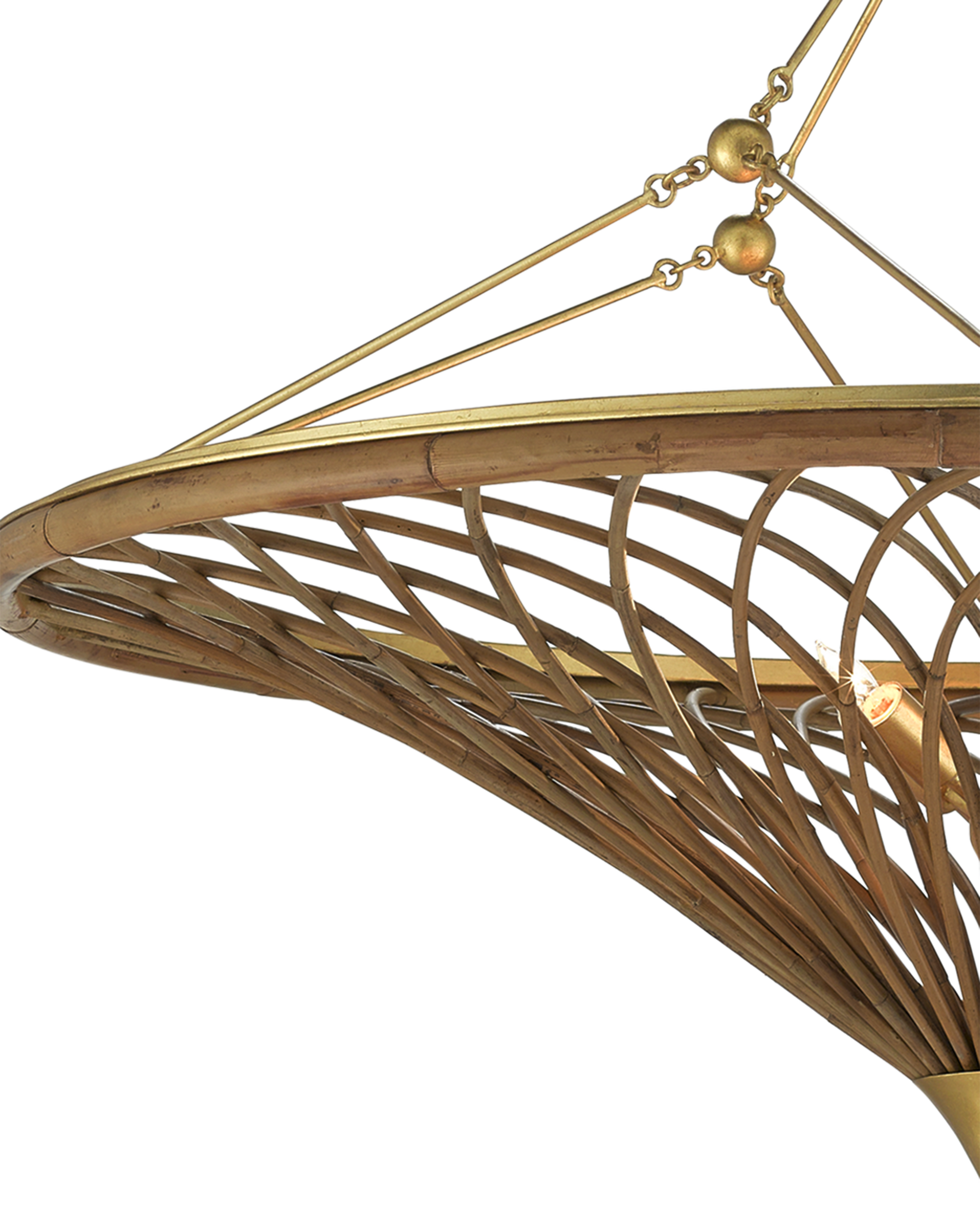 Working with natural materials like rattan is a strong suit of our artisans, who've taken the reeds and woven them into a work of art in our Gaborone Chandelier. The frame is made of wrought iron in a contemporary gold leaf finish. The hanging hardware on this natural rattan chandelier and the pointed cap at its bottom-most point add to the warmth of this lovely fixture. Adjustable from 46.5" to 113" with use of included chain/rod kit/cable. If your space calls for a longer drop, additional chain/rods/cable is available for purchase.