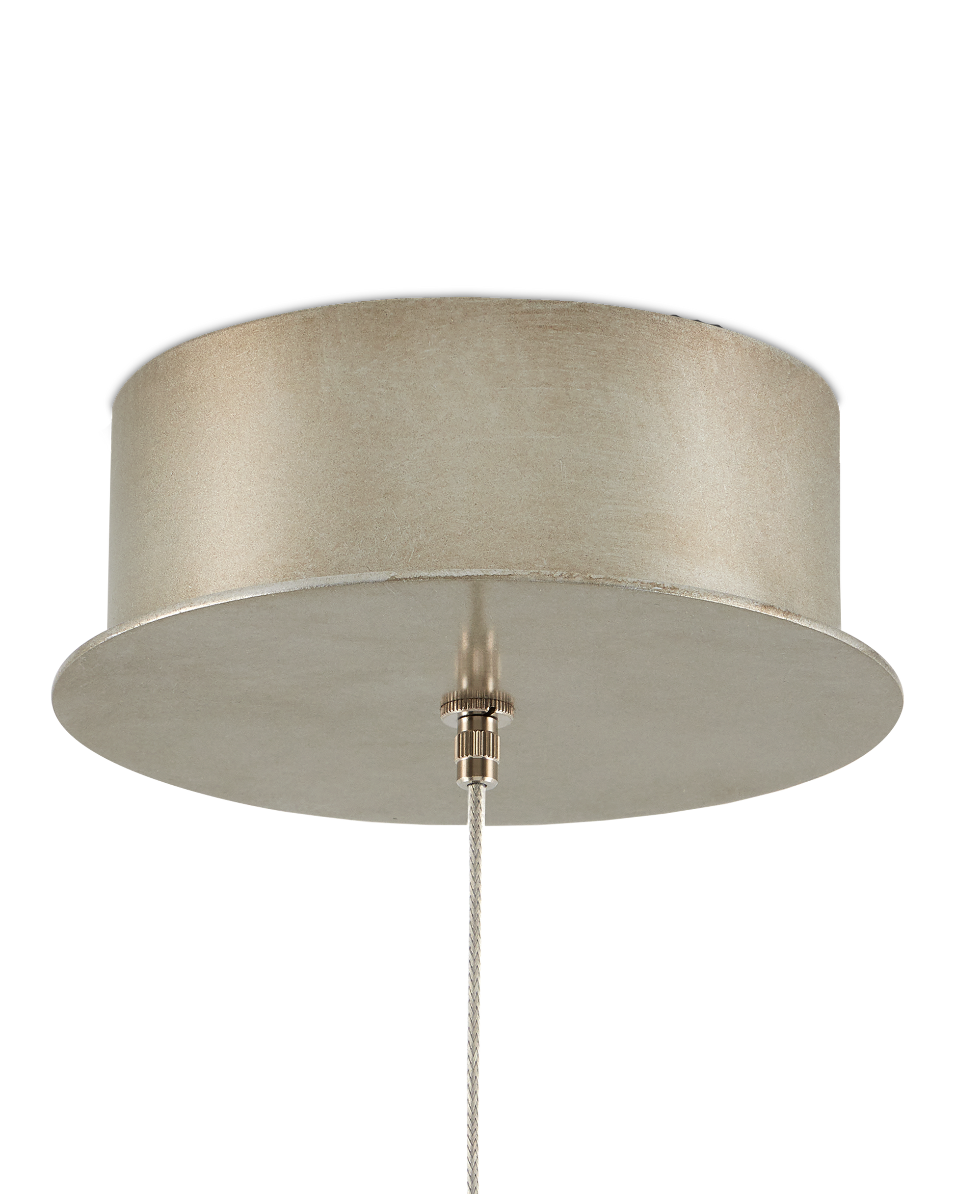 Our Giro 1-Light Multi-Drop Pendant has a metal shade that is pierced by hand; the textural globe in a mix of painted silver and nickel finishes on point for modern farmhouse interiors. Small blue beads placed in some of the piercings add a lovely color to the silver pendan as light strikes it. The canopy of this piece is luminous in a painted silver finish. This fixture is among Currey & Company's multi-drop pendant collection, which includes multiple configurations.