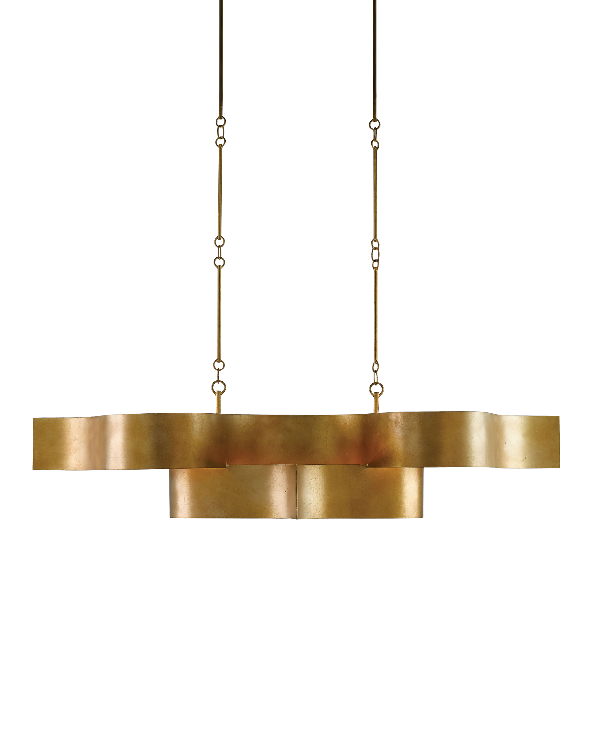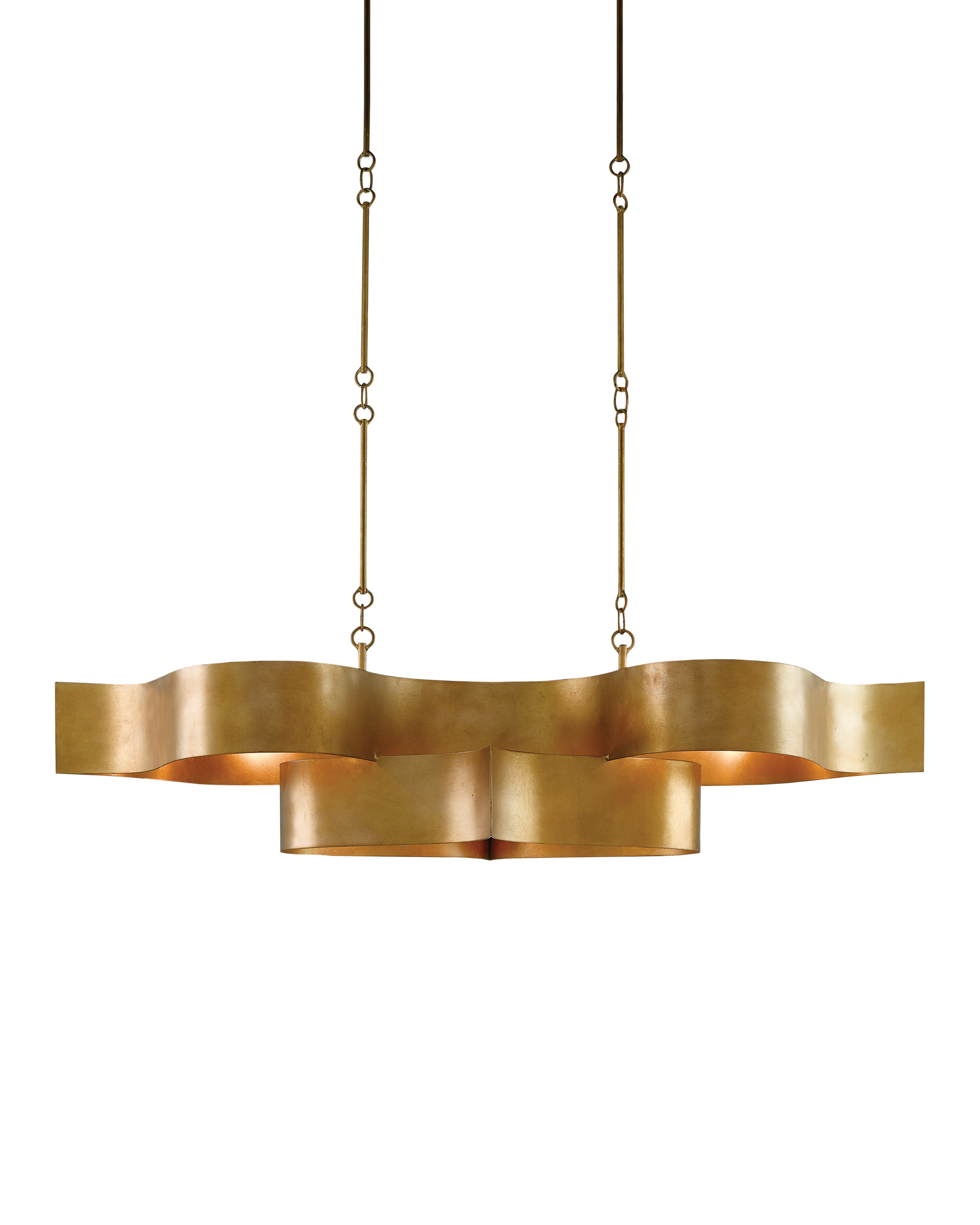The Grand Lotus Gold Oval Chandelier receives its majestic good looks from a combination of stunning workmanship and its antique gold leaf finish. The gold chandelier is skillfully fashioned from sheets of wrought iron. This is one of a number of designs in a variety of finishes in this family of fixtures. Adjustable from 17" to 58" with use of included chain/rod kit/cable. If your space calls for a longer drop, additional chain/rods/cable is available for purchase.