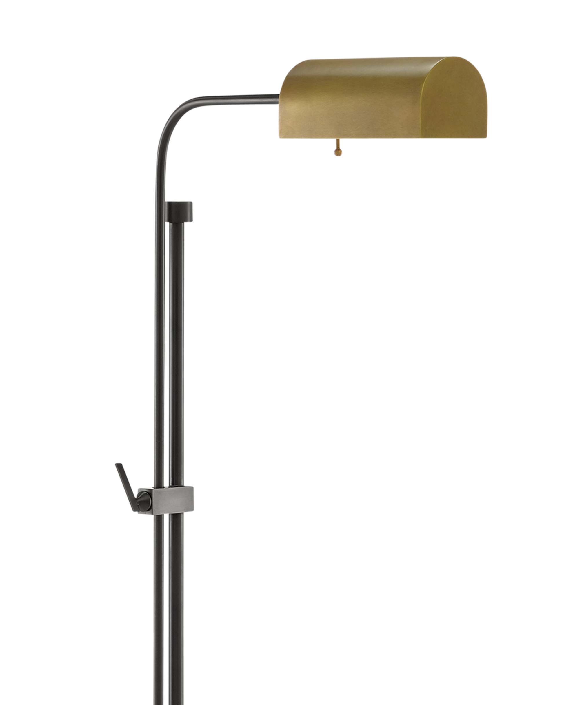 The Hearst Floor Lamp has deftly designed hardware in the interlocking stems that extend from the metal base to the shade. An intermingling of antique brass and oil-rubbed bronze finishes brings this gold lamp an industrial chic vibe. Another nostalgic nod on the lamp is the pull chain.