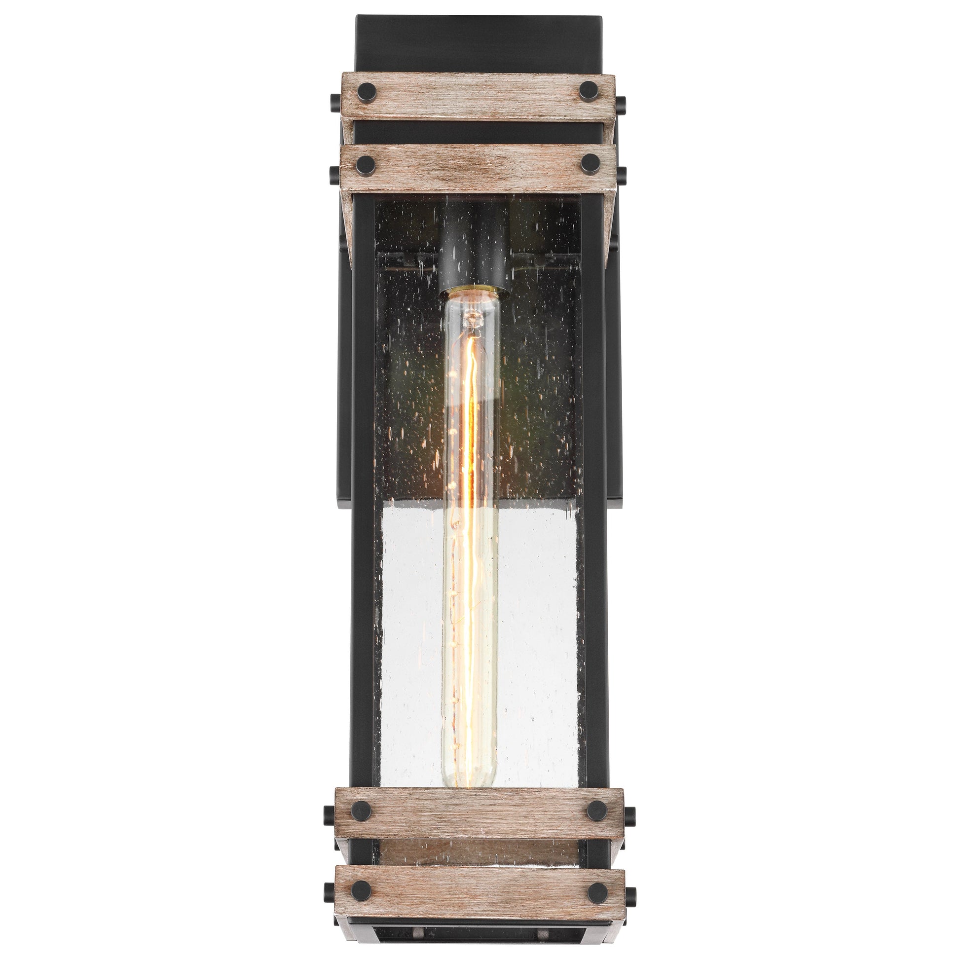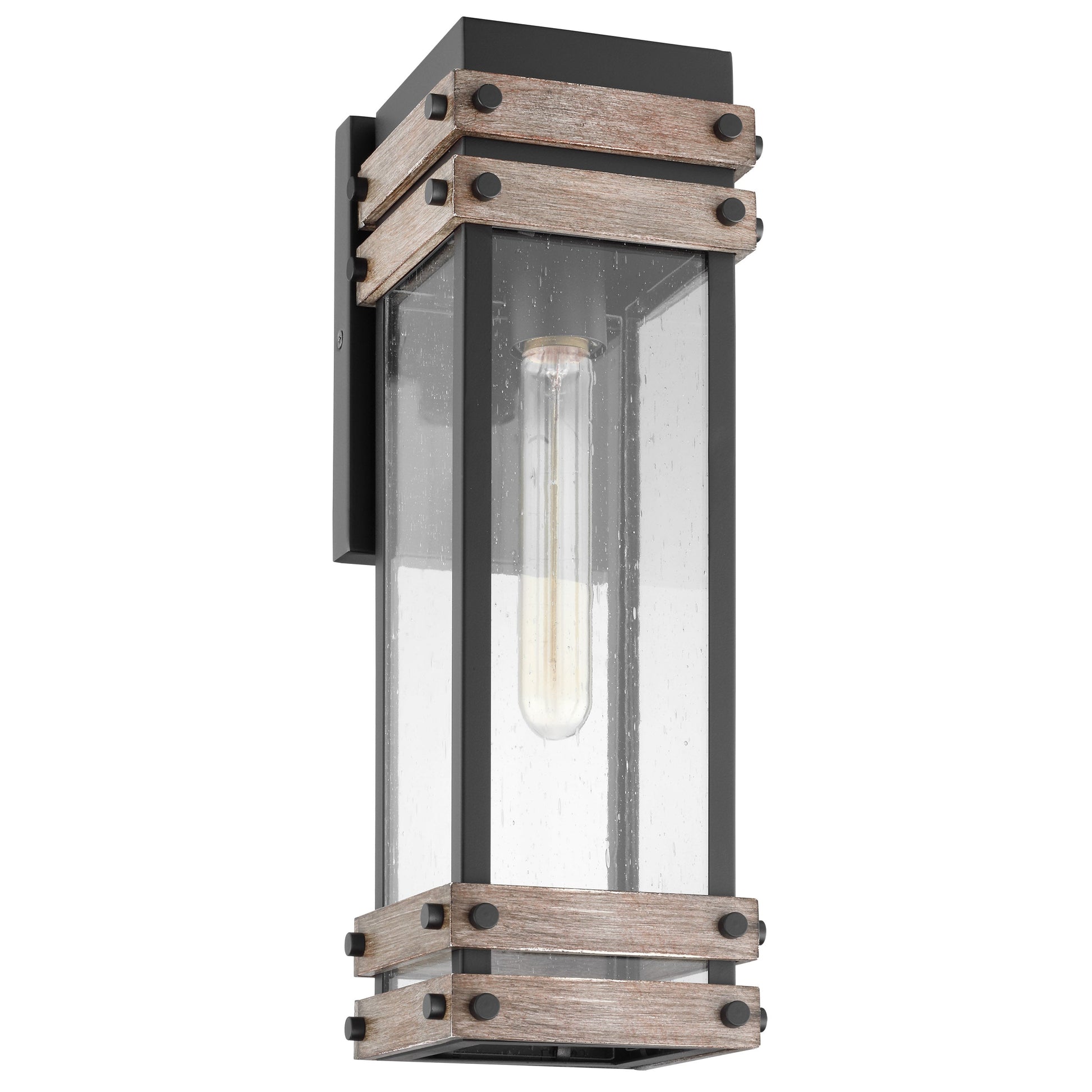 Homestead; 1 Light; Medium Wall Lantern; Matte Black & Wood Finish with Clear Seeded Glass