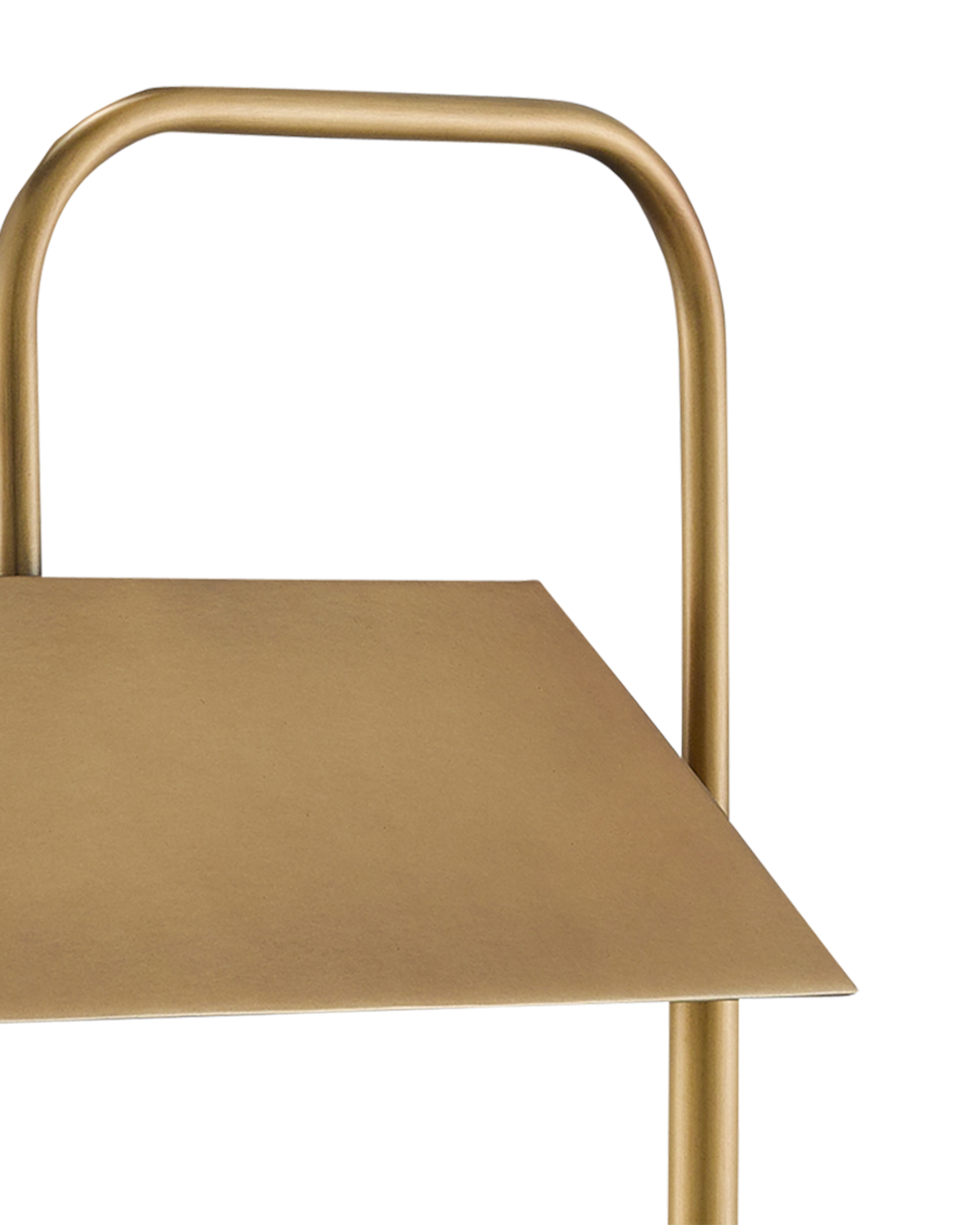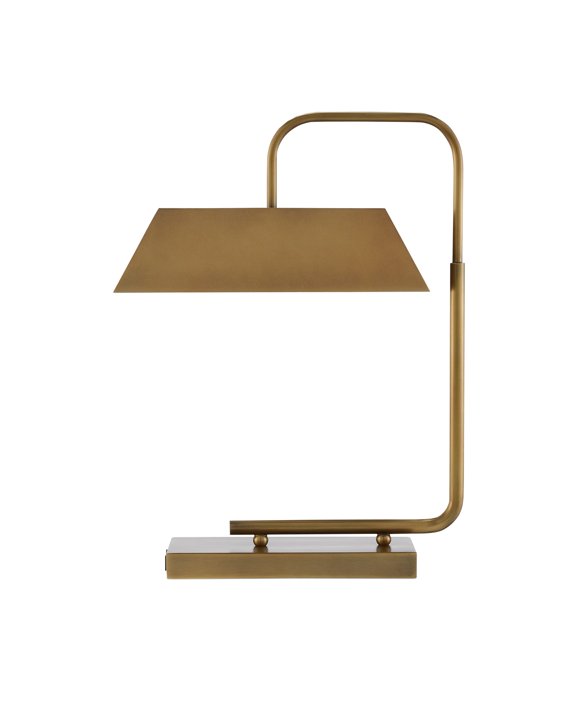 A perfect little desk lamp, our Hoxton Gold Table Lamp has a USB port in its base. Made of metal in a light antique brass finish, the gold lamp is an intermingling of geometric shapes that exhibit style. The rectangular shade completes the brass composition.