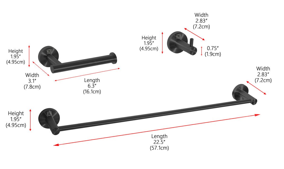 Upgrade your bathroom with our exclusive Bathroom Hardware Set, available in a stunning array of finishes: brushed gold, brushed nickel, Chrome, and Matte Black. This meticulously designed set is your solution for enhancing your bathroom's aesthetics and functionality. The set includes a 22.5" long towel bar, a 6.3" long toilet paper holder, and a versatile towel/robe hook, providing a complete solution for your bathroom needs. Each piece is thoughtfully designed for easy wall-mounted installation, saving space and ensuring a secure fit. Crafted from high-quality stainless steel, our hardware set not only adds a touch of luxury to your bathroom but also guarantees unrivaled durability. Stainless steel's natural resistance to corrosion, stains, rust, and scratches ensures that your bathroom remains as stunning as the day you installed it. The open-ended design of the toilet paper holder simplifies the process of replacing rolls, offering convenience and practicality. Installation is hassle-free with the included mounting hardware, making it a straightforward DIY project for homeowners. The stainless steel finish is not only visually appealing but also easy to maintain. Bid farewell to the hassle of scrubbing and polishing and enjoy a bathroom that retains its allure with minimal effort. The minimalist design of our hardware set ensures its adaptability to any bathroom decor, making it the ideal addition to your space. Elevate your bathroom with our premium Bathroom Hardware Set, where style, convenience, and durability converge. Transform your bathroom into a more elegant and efficient space today.