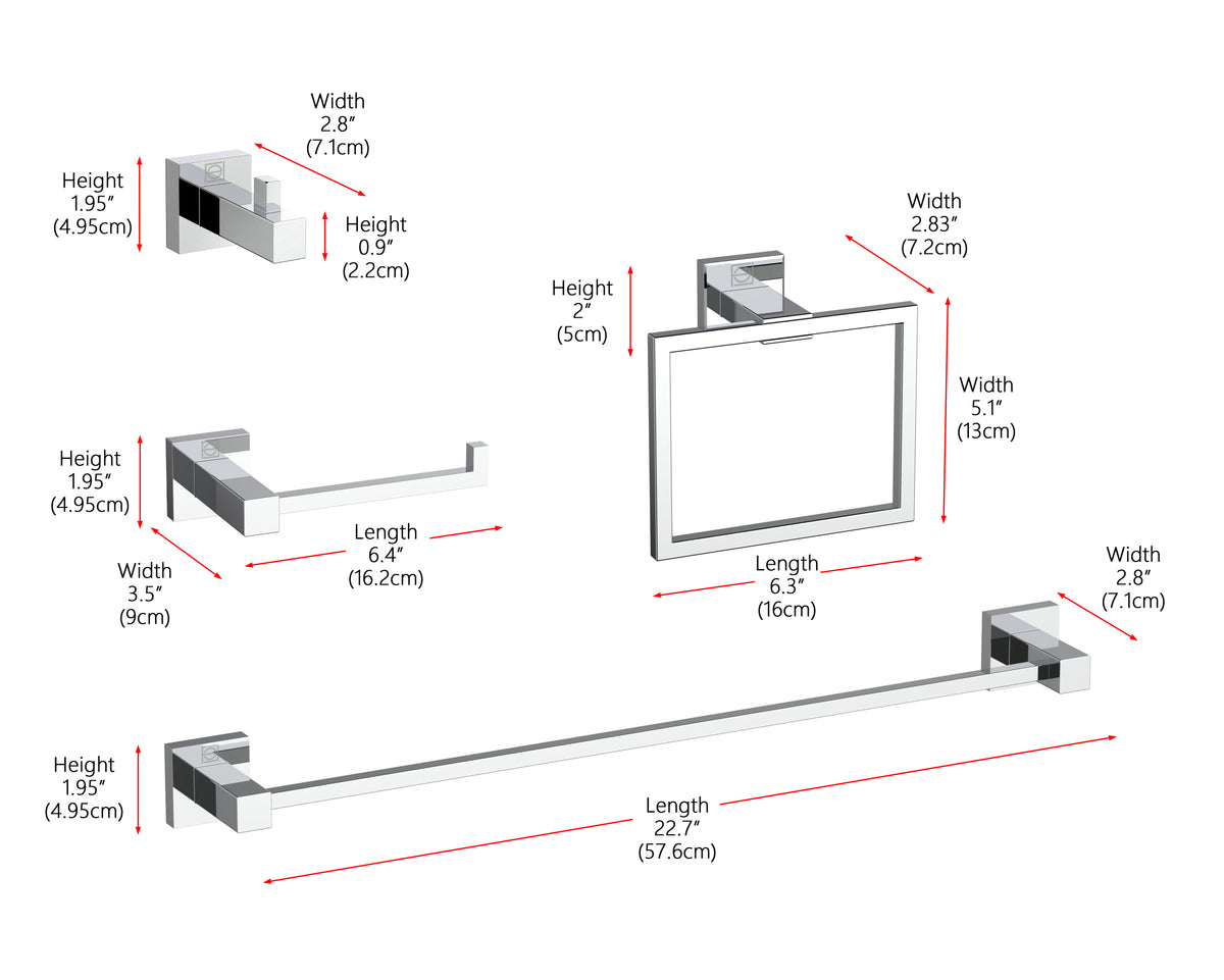 Transform your bathroom with our exclusive Bathroom Hardware Set, available in a range of exquisite finishes: brushed gold, brushed nickel, Chrome, and Matte Black. This meticulously designed set is the all-in-one solution for your bathroom needs, comprising a 22.5" long towel bar, a 6.3" open-ended toilet paper holder, a 2.83" towel/robe hook, and a 7.1" diameter towel ring. Each piece in this set is crafted from high-quality stainless steel, adding a touch of luxury to your bathroom while ensuring unrivaled durability. Stainless steel's natural resistance to corrosion, stains, rust, and scratches guarantees that your bathroom remains as stunning as the day you installed it. The open-ended design of the toilet paper holder simplifies roll replacement, offering convenience and practicality. Installation is hassle-free, thanks to the included mounting hardware, making it a straightforward DIY project for homeowners. Each item is thoughtfully designed for wall-mounted installation, saving space and ensuring a secure fit. The stainless steel finish is not only visually appealing but also easy to maintain, eliminating the need for frequent scrubbing and polishing. The minimalist design of our hardware set ensures its adaptability to any bathroom decor, making it the ideal addition to your space. Invest in a bathroom that stays as stunning as the day you installed it, thanks to our hardware set's corrosion, stain, rust, and scratch resistance. Experience the perfect blend of aesthetics and functionality, complete with easy installation and easy maintenance. Elevate your bathroom with our premium Bathroom Hardware Set, where style, convenience, and durability converge. Transform your bathroom into a more elegant and efficient space today.