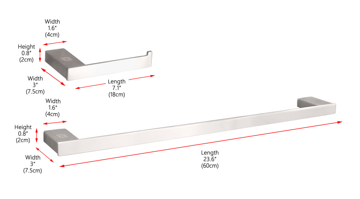 Upgrade your bathroom with our exclusive Bathroom Hardware Set, available in stunning finishes: brushed gold, brushed nickel, Chrome, and Matte Black. This meticulously designed set offers the perfect blend of style and utility, featuring a remarkable 23.6" long towel bar and a convenient 7.1" long toilet paper holder, effortlessly elevating your bathroom's functionality and elegance. Crafted from high-quality stainless steel, our hardware set not only adds a touch of luxury to your bathroom but also ensures unrivaled durability. Stainless steel's inherent resistance to corrosion, stains, rust, and scratches guarantees that your bathroom retains its stunning appearance. The open-ended design of the toilet paper holder simplifies roll replacement, providing convenience and practicality. Installation is a breeze, thanks to the included mounting hardware, making it a straightforward DIY project for homeowners. Each item is thoughtfully designed for wall-mounted installation, saving space and ensuring a secure fit. The stainless steel finish is not only visually appealing but also easy to maintain, eliminating the need for frequent scrubbing and polishing. The minimalist design of our hardware set ensures its adaptability to any bathroom decor, making it the ideal addition to your space. Invest in a bathroom that remains as stunning as the day you installed it, thanks to our hardware set's corrosion, stain, rust, and scratch resistance. Experience the perfect fusion of aesthetics and functionality, complete with easy installation and easy maintenance. Elevate your bathroom with our premium Bathroom Hardware Set, where style, convenience, and durability come together to transform your bathroom into a more elegant and efficient space.