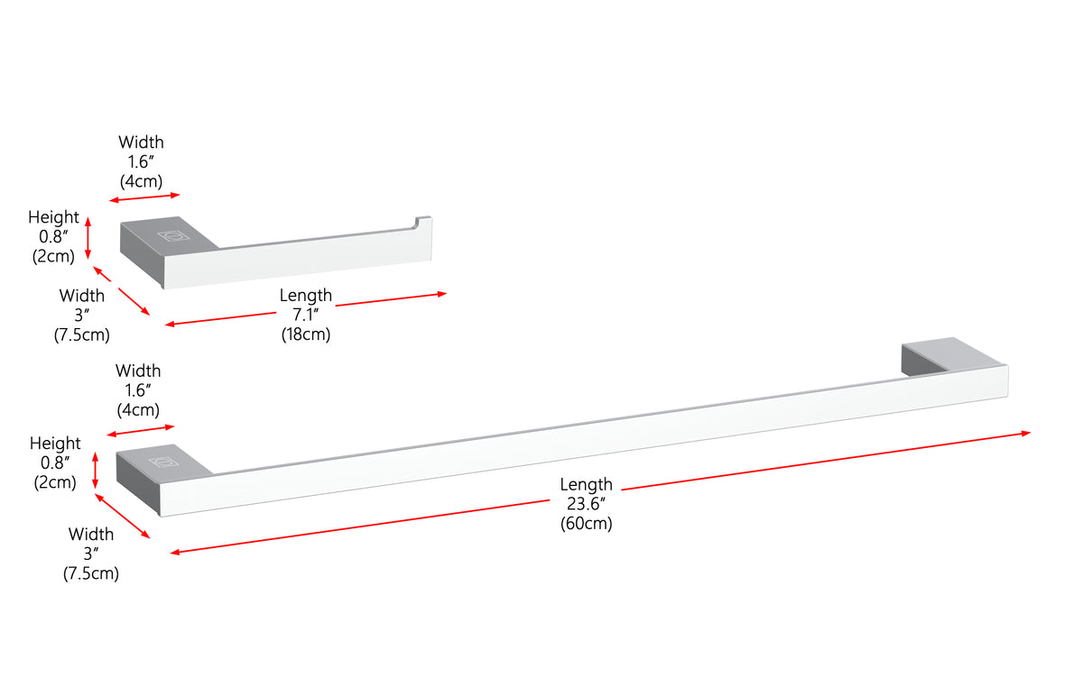Upgrade your bathroom with our exclusive Bathroom Hardware Set, available in stunning finishes: brushed gold, brushed nickel, Chrome, and Matte Black. This meticulously designed set offers the perfect blend of style and utility, featuring a remarkable 23.6" long towel bar and a convenient 7.1" long toilet paper holder, effortlessly elevating your bathroom's functionality and elegance. Crafted from high-quality stainless steel, our hardware set not only adds a touch of luxury to your bathroom but also ensures unrivaled durability. Stainless steel's inherent resistance to corrosion, stains, rust, and scratches guarantees that your bathroom retains its stunning appearance. The open-ended design of the toilet paper holder simplifies roll replacement, providing convenience and practicality. Installation is a breeze, thanks to the included mounting hardware, making it a straightforward DIY project for homeowners. Each item is thoughtfully designed for wall-mounted installation, saving space and ensuring a secure fit. The stainless steel finish is not only visually appealing but also easy to maintain, eliminating the need for frequent scrubbing and polishing. The minimalist design of our hardware set ensures its adaptability to any bathroom decor, making it the ideal addition to your space. Invest in a bathroom that remains as stunning as the day you installed it, thanks to our hardware set's corrosion, stain, rust, and scratch resistance. Experience the perfect fusion of aesthetics and functionality, complete with easy installation and easy maintenance. Elevate your bathroom with our premium Bathroom Hardware Set, where style, convenience, and durability come together to transform your bathroom into a more elegant and efficient space.