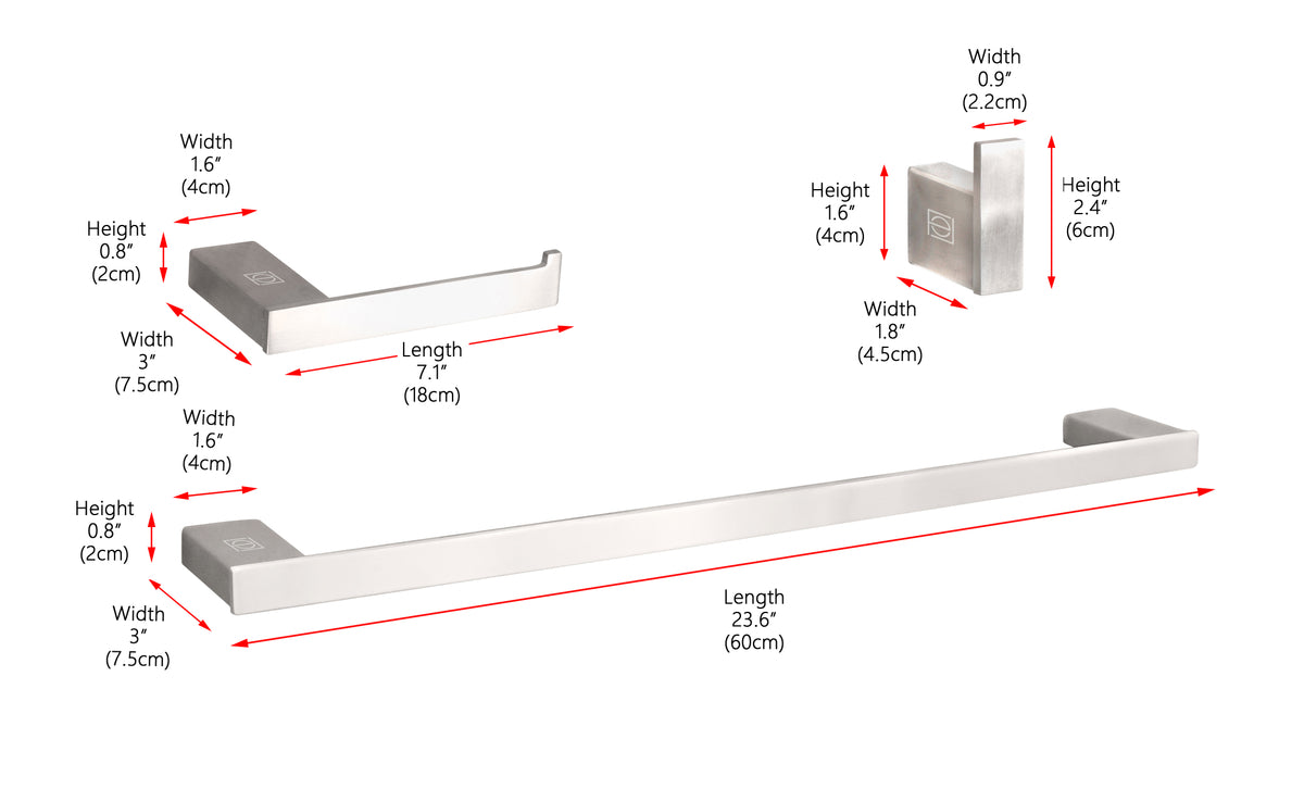 Introducing our Bathroom Hardware Set, available in a range of stunning finishes including brushed gold, brushed nickel, Chrome, and Matte Black. This comprehensive set is designed to elevate your bathroom, providing a well-organized and stylish space. It includes a 23.6" long towel bar, a 7.1" long toilet paper holder, and a practical 2.4" towel/robe hook, ensuring all your bathroom needs are met. Crafted from high-quality stainless steel, our hardware set not only adds a touch of luxury to your bathroom but also guarantees unrivaled durability. Stainless steel's inherent resistance to corrosion, stains, rust, and scratches ensures that your bathroom maintains its stunning appearance, just as it did on installation day. The open-ended design of the toilet paper holder simplifies roll replacement, offering both convenience and practicality. Installation is a breeze, with all the required mounting hardware included in the package, making it a straightforward and hassle-free DIY project. Each item is meticulously designed for easy wall-mounted installation, saving space and providing a secure solution for your bathroom. The stainless steel finish not only adds visual appeal but is also easy to maintain, eliminating the need for frequent scrubbing and polishing. The minimalist design of our hardware set ensures its versatility and adaptability to complement any bathroom decor, making it the ideal addition to your space. Invest in a bathroom that remains as stunning as the day you installed it, thanks to our hardware set's corrosion, stain, rust, and scratch resistance. Experience the perfect blend of style, convenience, and durability, complete with straightforward installation and effortless maintenance. Transform your bathroom with our versatile and practical Bathroom Hardware Set, providing a comprehensive solution for a more organized, stylish, and well-structured space.