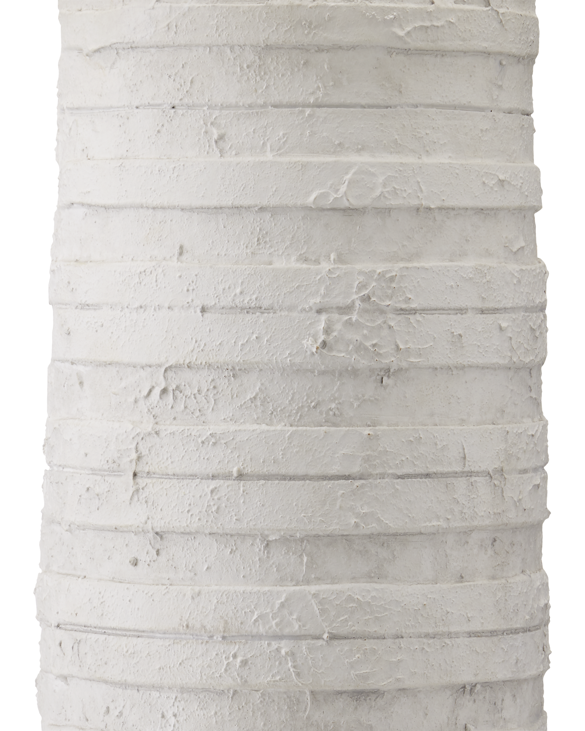 Flat discs of terracotta encircle a wrought iron spine on our Innkeeper White Table Lamp designed by Ian Thornton. The rustic feel of this natural material still discernable after the white finish has been applied means it has a heavy dose of texture. The table lamp is topped with a light natural linen shade held in place by a matching terracotta finial. Introducing added character are the visible satin black hardware contrasting the pale elements and the columnar body narrowing slightly to create an implied base.