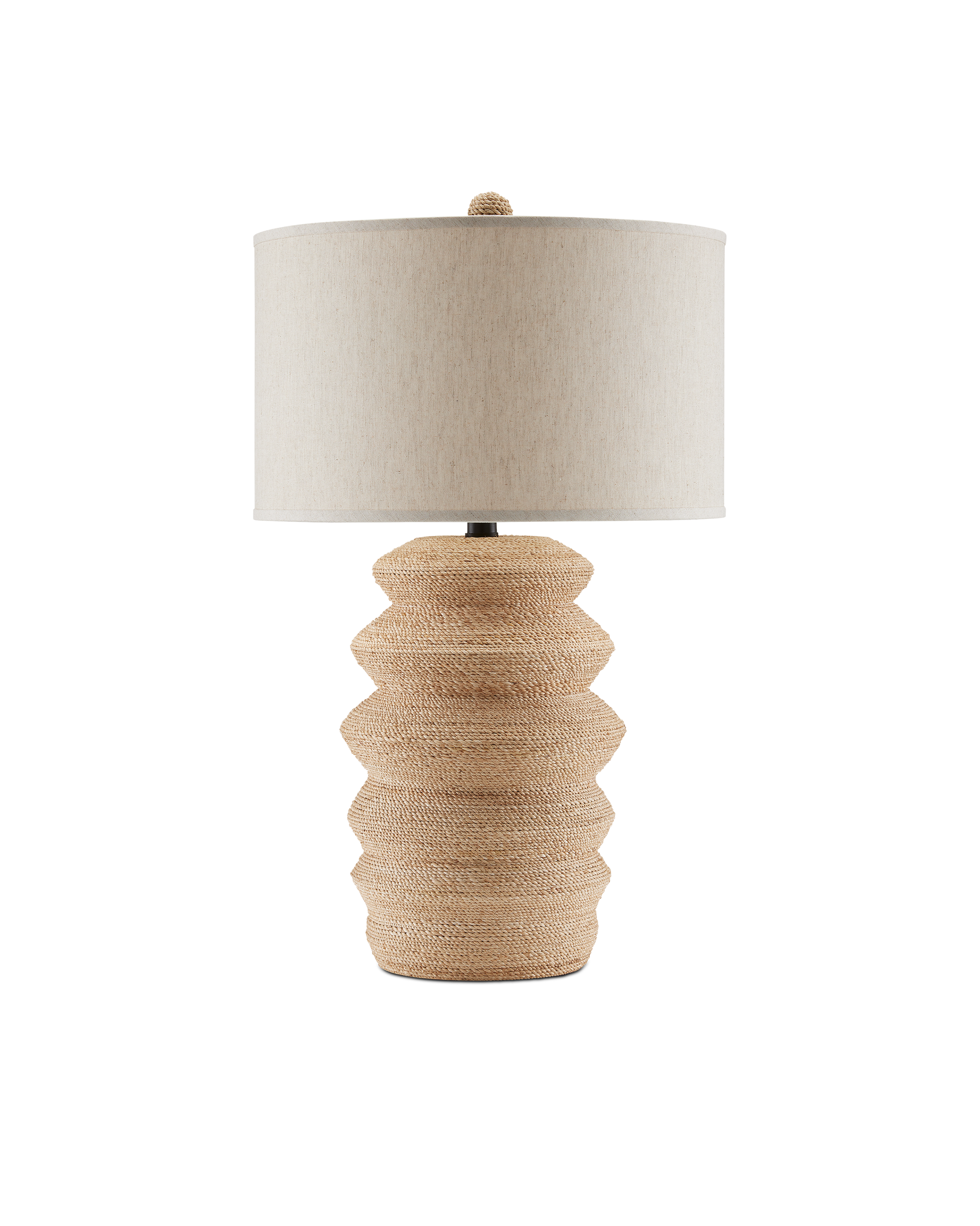 The Kavala Table Lamp has an accordion shape that creates a challenge for those seamlessly wrapping it in abaca rope, but that didn't stop the talented artisans who created it from doing just that. The body that serves as the structure for the rope is made of terracotta. A round rope-wrapped finial fastens the natural linen shade to this rope lamp that was inspired by statement pieces among our accessories.