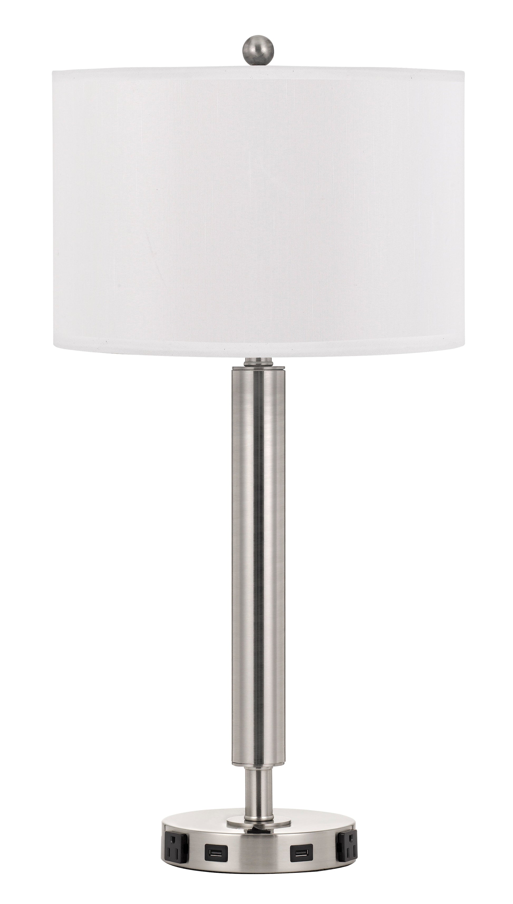 The Metal Night Stand Lamp With USB And Power Outlets features a durable metal construction including two power outlets and two USB ports.