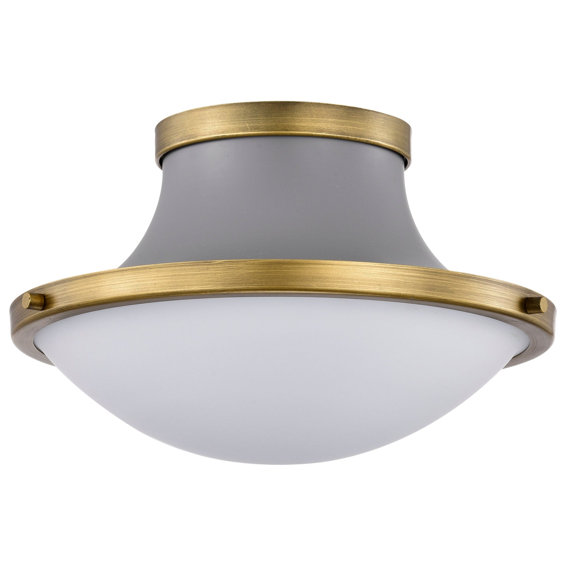 Lafayette 1 Light Flush Mount Fixture; 14 Inches; Gray Finish with Natural Brass Accents and White Opal Glass