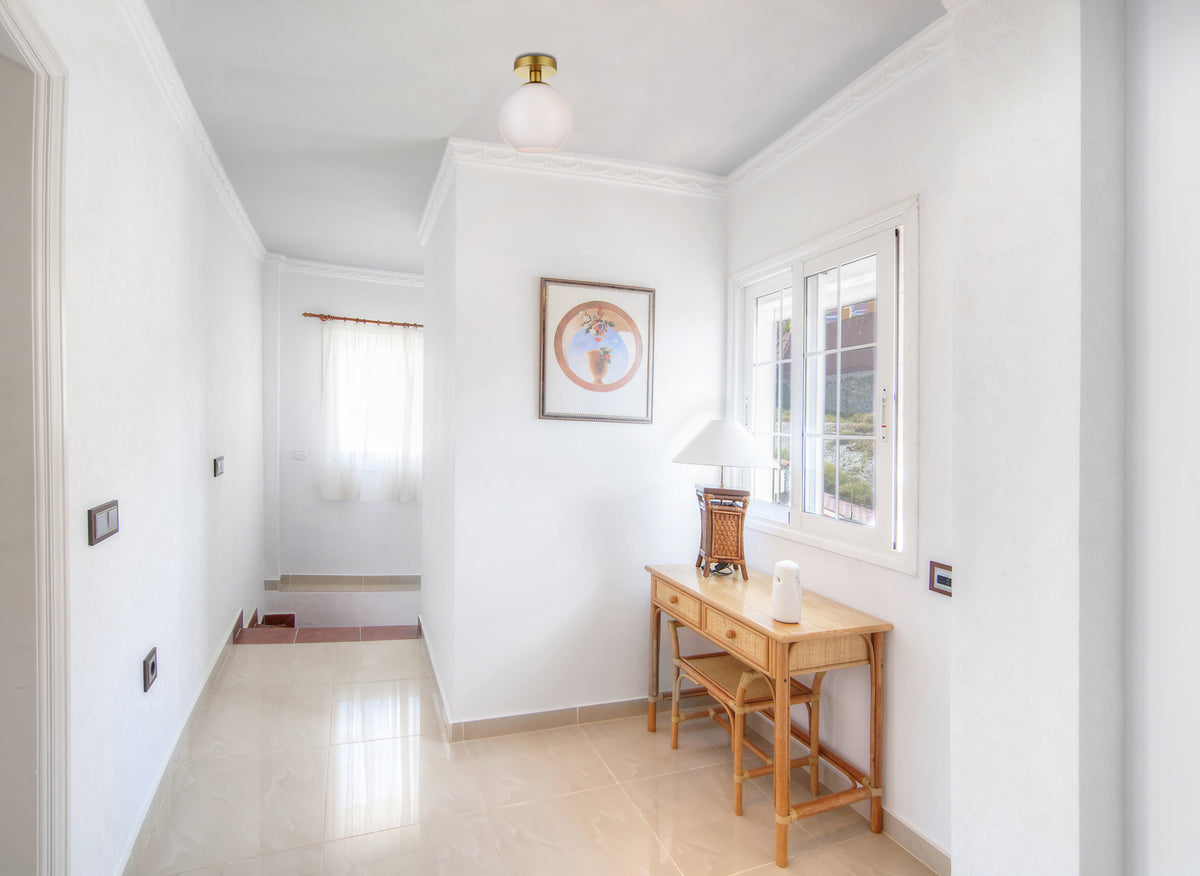 Refined style with a practical design, Baxter flush-mount ceiling lamps bring cosmopolitan sophistication anywhere, especially to an entryway, hallway, bathroom, kitchen, or closet. The smooth iron frame features a disk-shaped canopy and comes in a chrome finish. The frosted white spherical glass shade remains open at the center to allow for effortless replacement of the filament-style bulb (not included). Living in the big city has never been this easy.